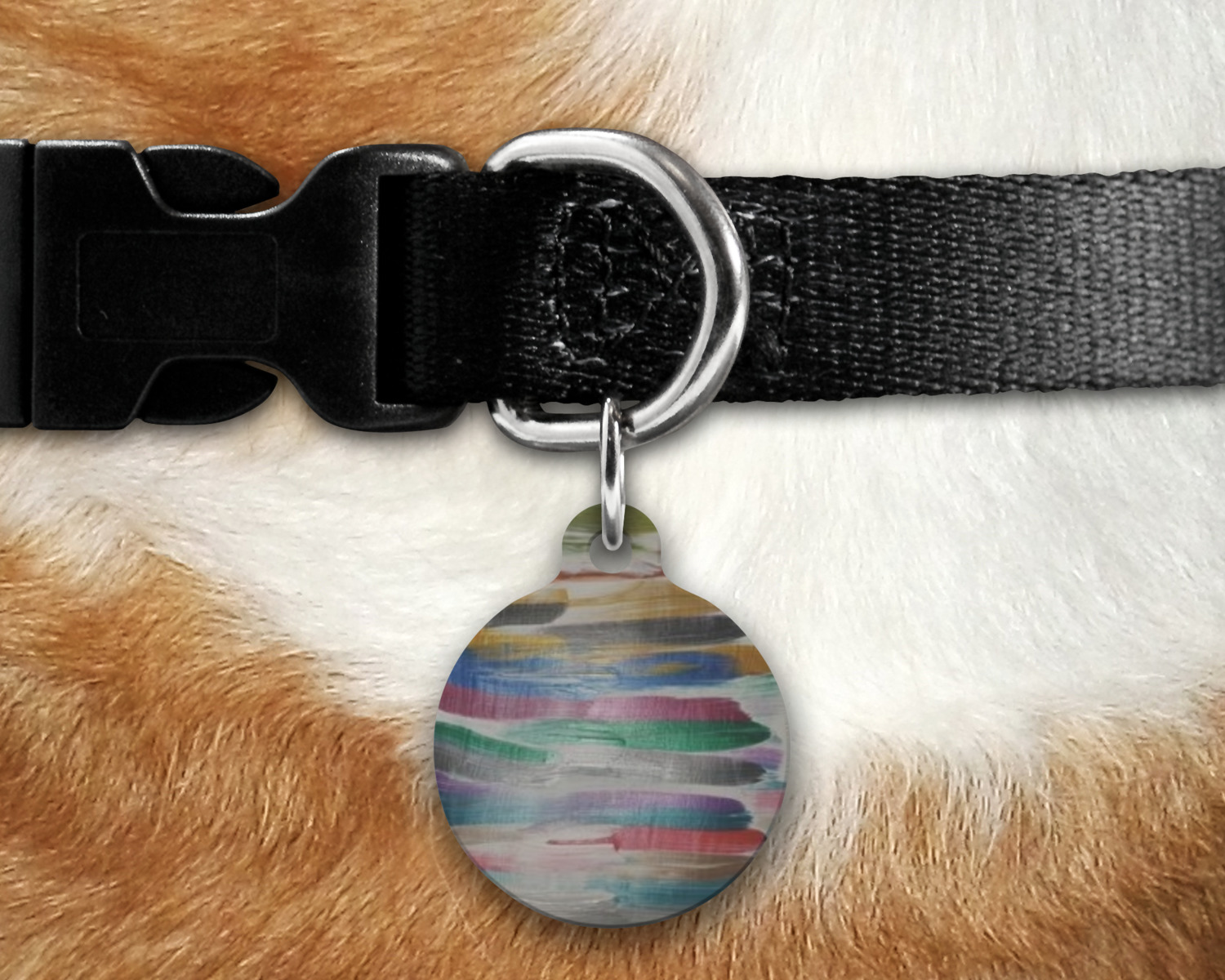 Go ahead; skip the monotony of plain pet ID tags with your very own, customized & personalized, round pet tag! This pet ID tag, fitting for both cats and dogs, will catch the eye of any onlooker (humans, canines, and felines, alike!) and accentuate your pet's individual personality.
