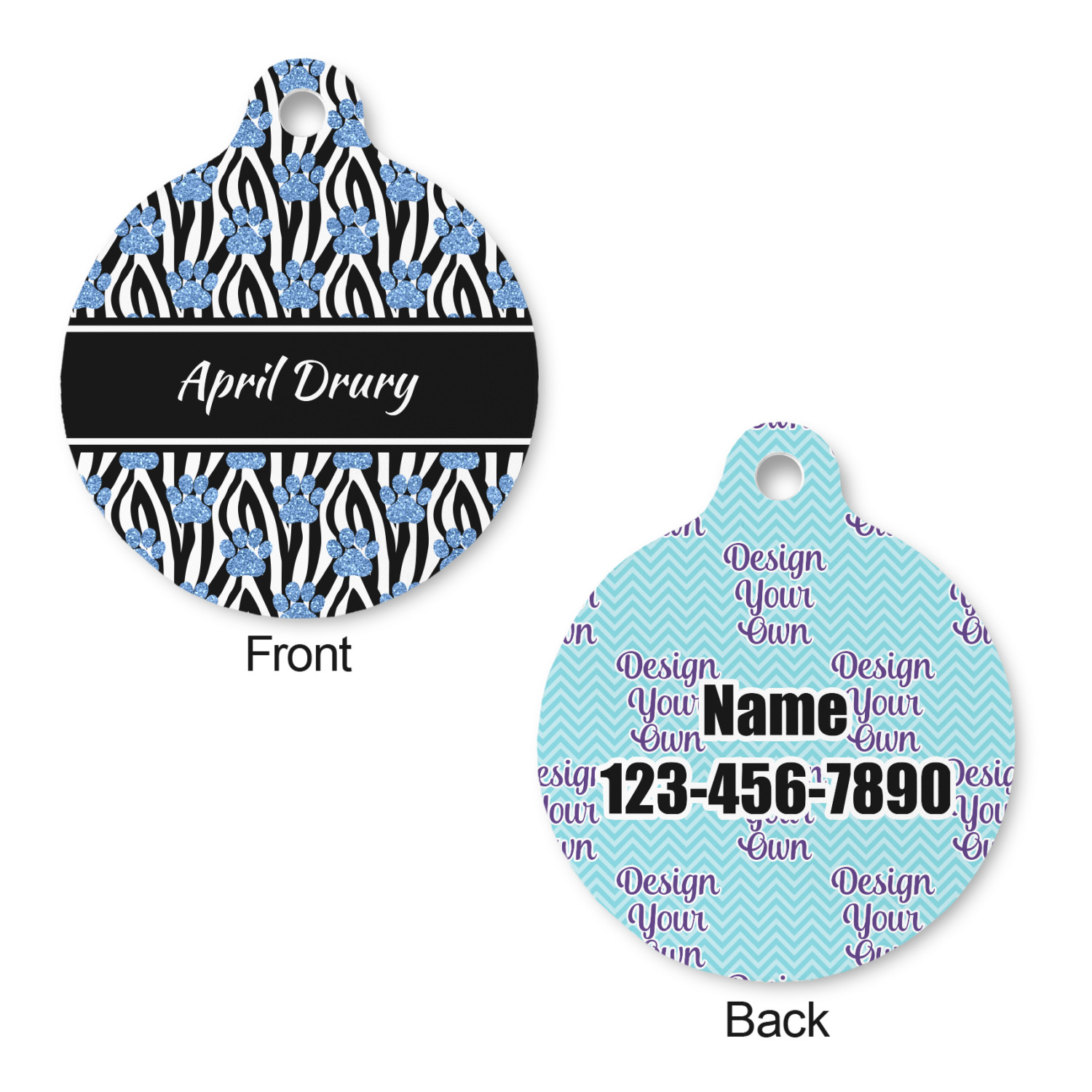 Go ahead; skip the monotony of plain pet ID tags with your very own, customized & personalized, round pet tag! This pet ID tag, fitting for both cats and dogs, will catch the eye of any onlooker (humans, canines, and felines, alike!) and accentuate your pet's individual personality.