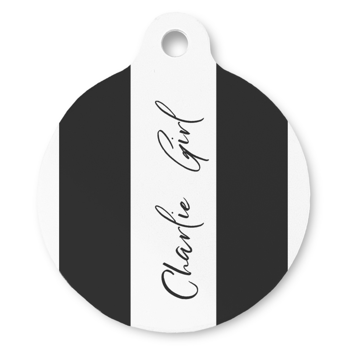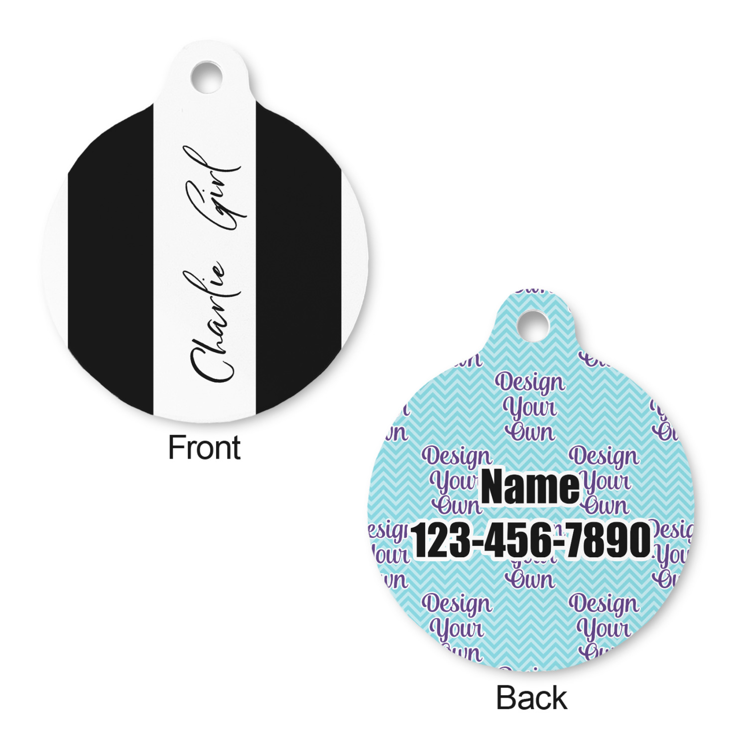 Go ahead; skip the monotony of plain pet ID tags with your very own, customized & personalized, round pet tag! This pet ID tag, fitting for both cats and dogs, will catch the eye of any onlooker (humans, canines, and felines, alike!) and accentuate your pet's individual personality.