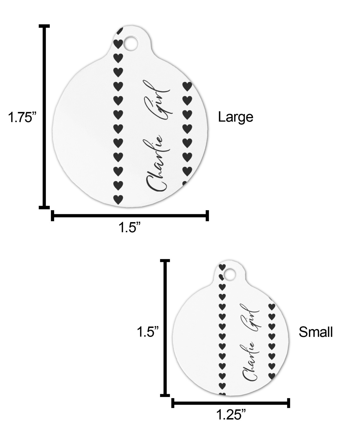 The sturdy, rounded, aluminum tags are available in 2 sizes.