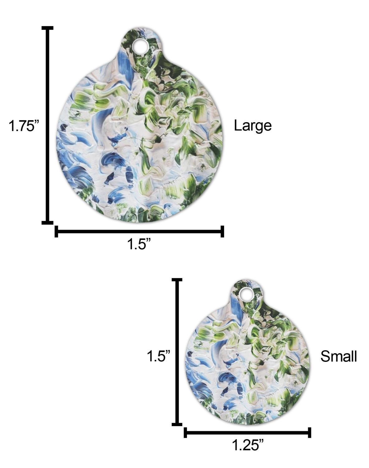 Go ahead; skip the monotony of plain pet ID tags with your very own, customized & personalized, round pet tag! This pet ID tag, fitting for both cats and dogs, will catch the eye of any onlooker (humans, canines, and felines, alike!) and accentuate your pet's individual personality.