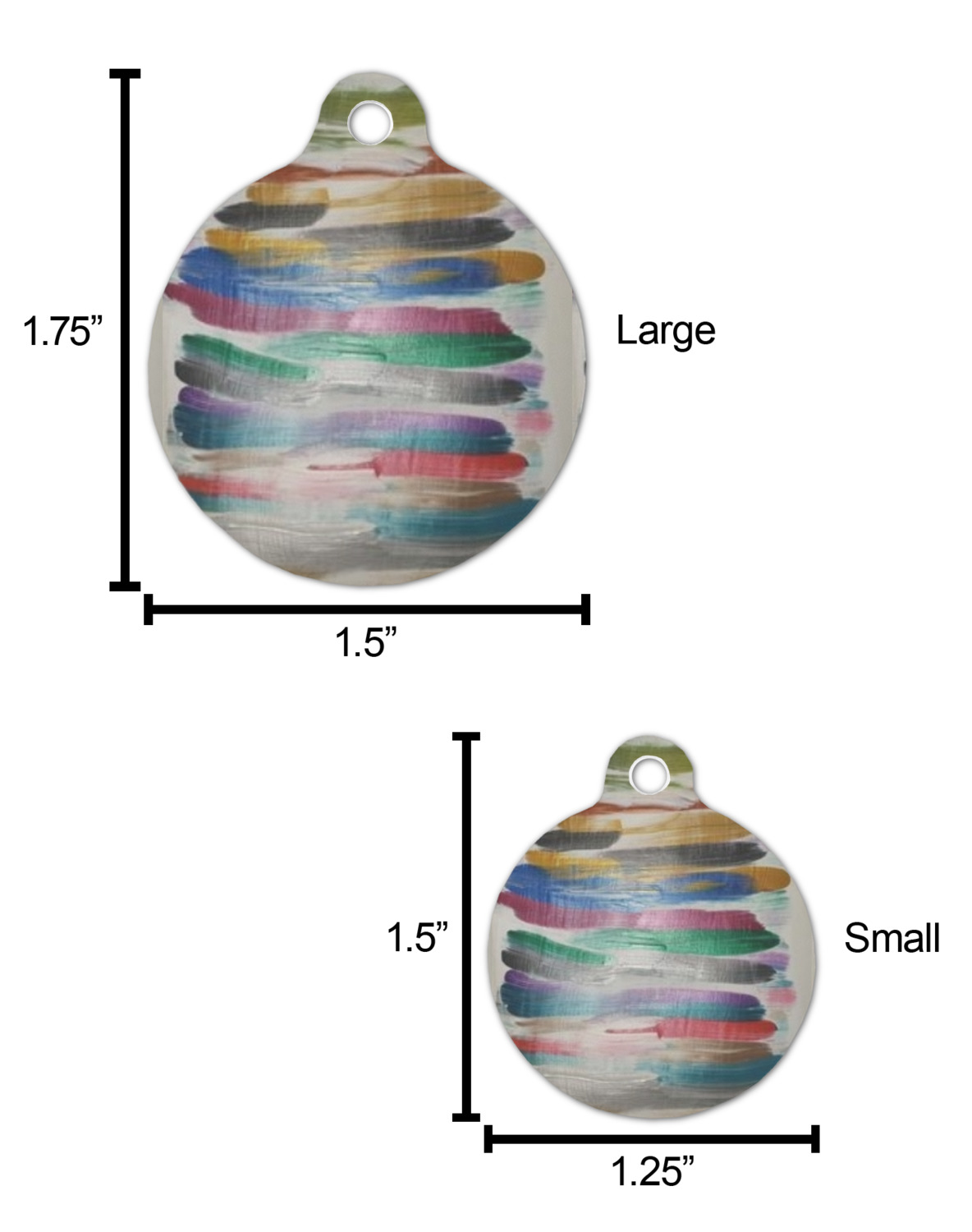 Go ahead; skip the monotony of plain pet ID tags with your very own, customized & personalized, round pet tag! This pet ID tag, fitting for both cats and dogs, will catch the eye of any onlooker (humans, canines, and felines, alike!) and accentuate your pet's individual personality.