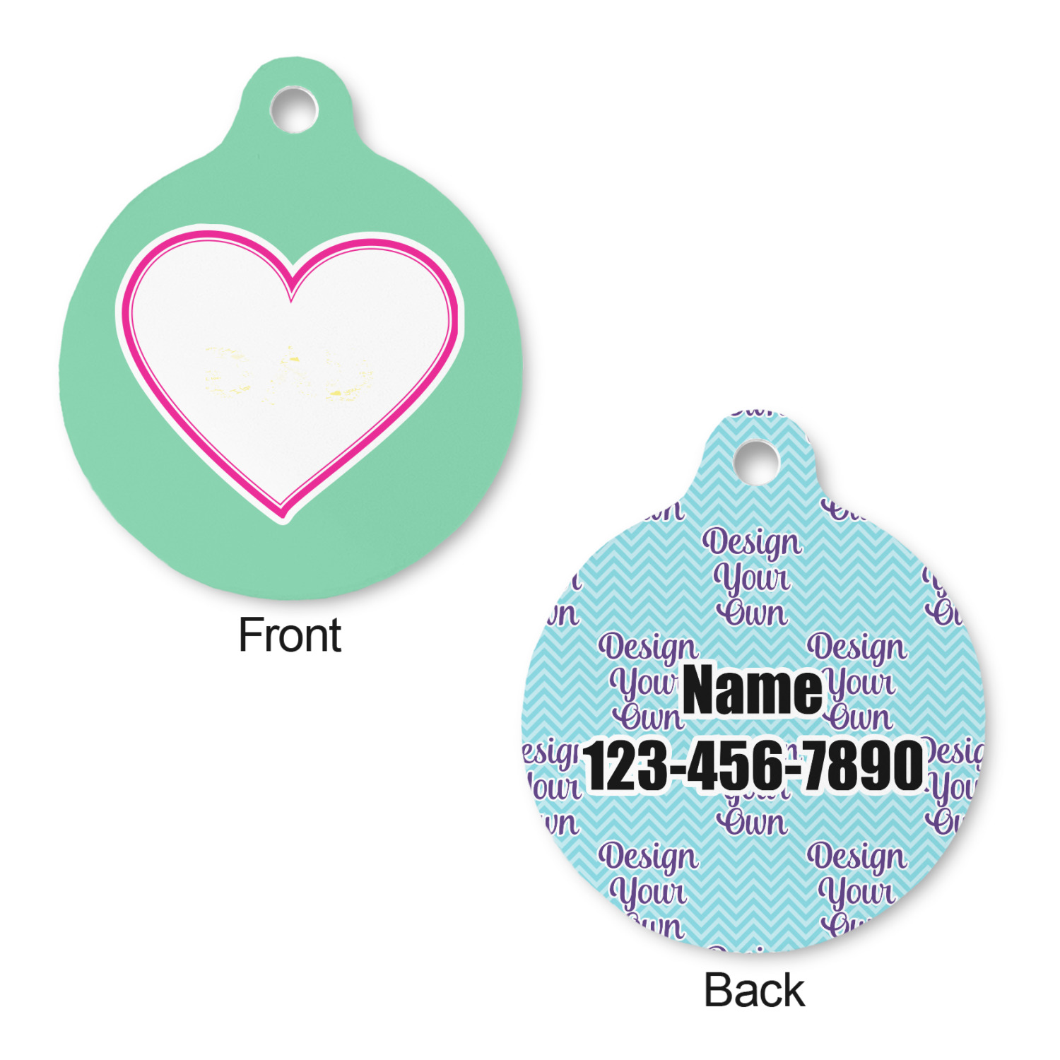 Go ahead; skip the monotony of plain pet ID tags with your very own, customized & personalized, round pet tag! This pet ID tag, fitting for both cats and dogs, will catch the eye of any onlooker (humans, canines, and felines, alike!) and accentuate your pet's individual personality.
