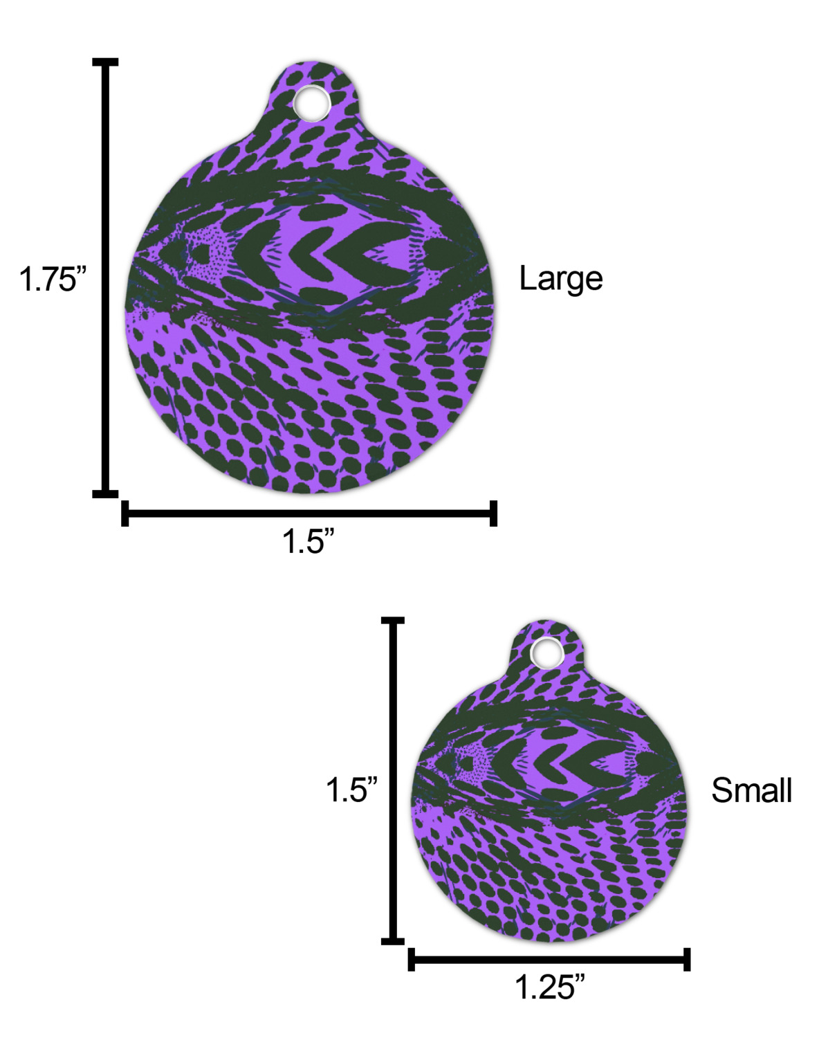 Go ahead; skip the monotony of plain pet ID tags with your very own, customized & personalized, round pet tag! This pet ID tag, fitting for both cats and dogs, will catch the eye of any onlooker (humans, canines, and felines, alike!) and accentuate your pet's individual personality.