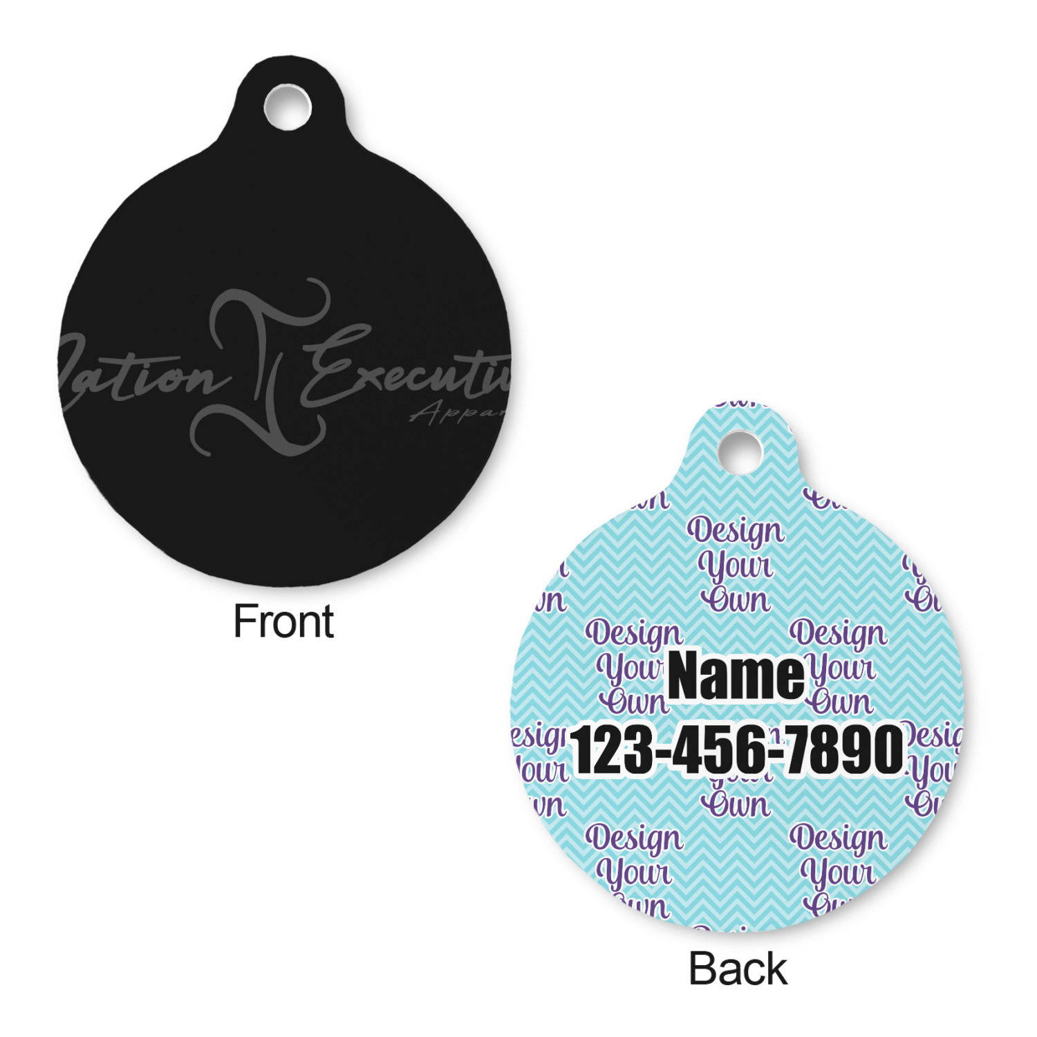Go ahead; skip the monotony of plain pet ID tags with your very own, customized & personalized, round pet tag! This pet ID tag, fitting for both cats and dogs, will catch the eye of any onlooker (humans, canines, and felines, alike!) and accentuate your pet's individual personality.