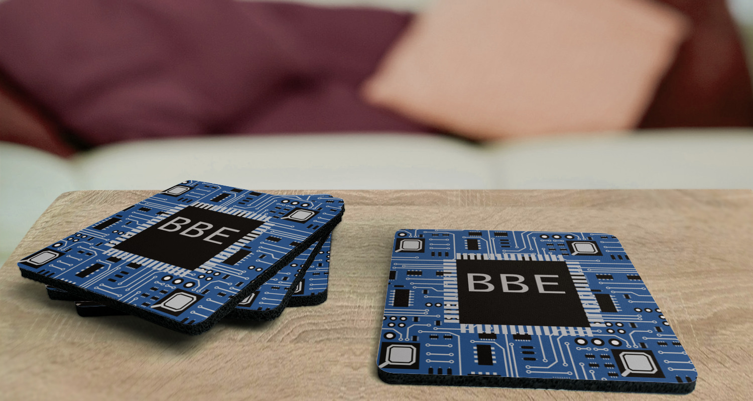 These drink coasters have a smooth, polyester top and a textured, rubber backing on its bottom. The non-slip rubber backing underneath works to keep any spills at bay. At 4 by 4 by 0.25 inches thick, these custom coasters are a suitable size for most drinkware. Your personalization is displayed atop the face of the cup coaster. We sell these rubber coasters in two different shapes: square and round. You can buy each shape as singulars or as a set of 4.