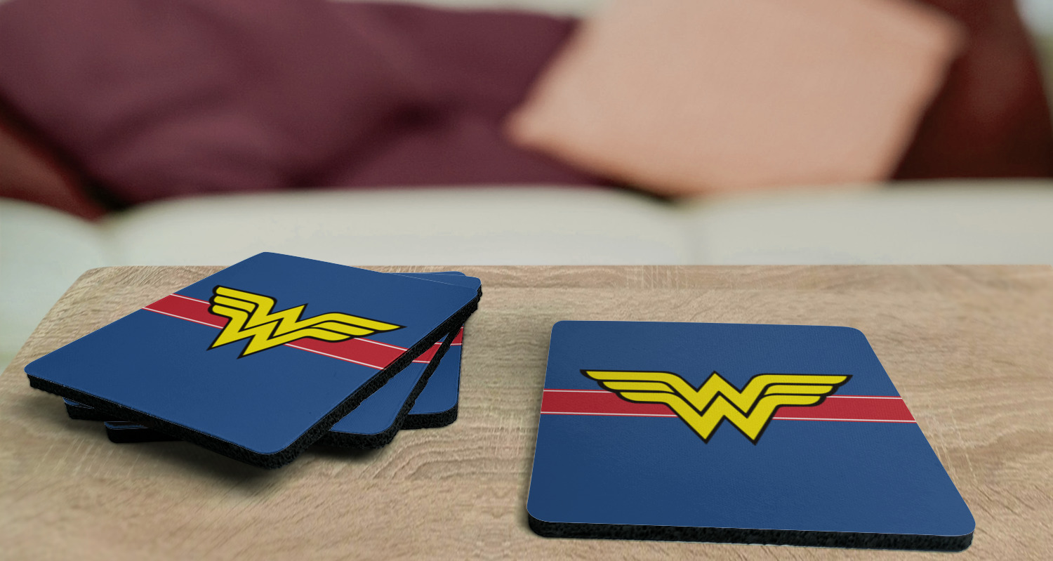 These drink coasters have a smooth, polyester top and a textured, rubber backing on its bottom. The non-slip rubber backing underneath works to keep any spills at bay. At 4 by 4 by 0.25 inches thick, these custom coasters are a suitable size for most drinkware. Your personalization is displayed atop the face of the cup coaster. We sell these rubber coasters in two different shapes: square and round. You can buy each shape as singulars or as a set of 4.