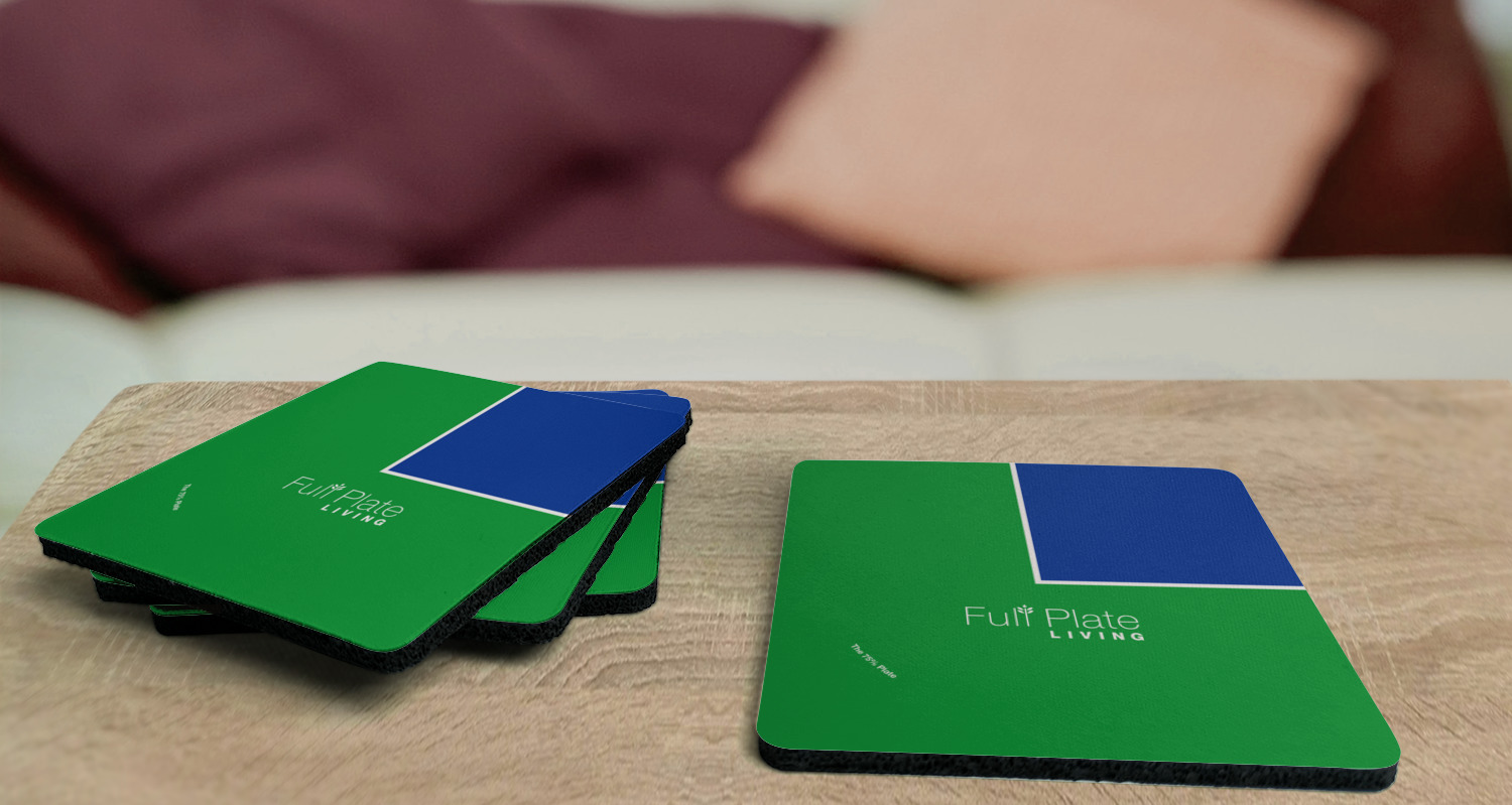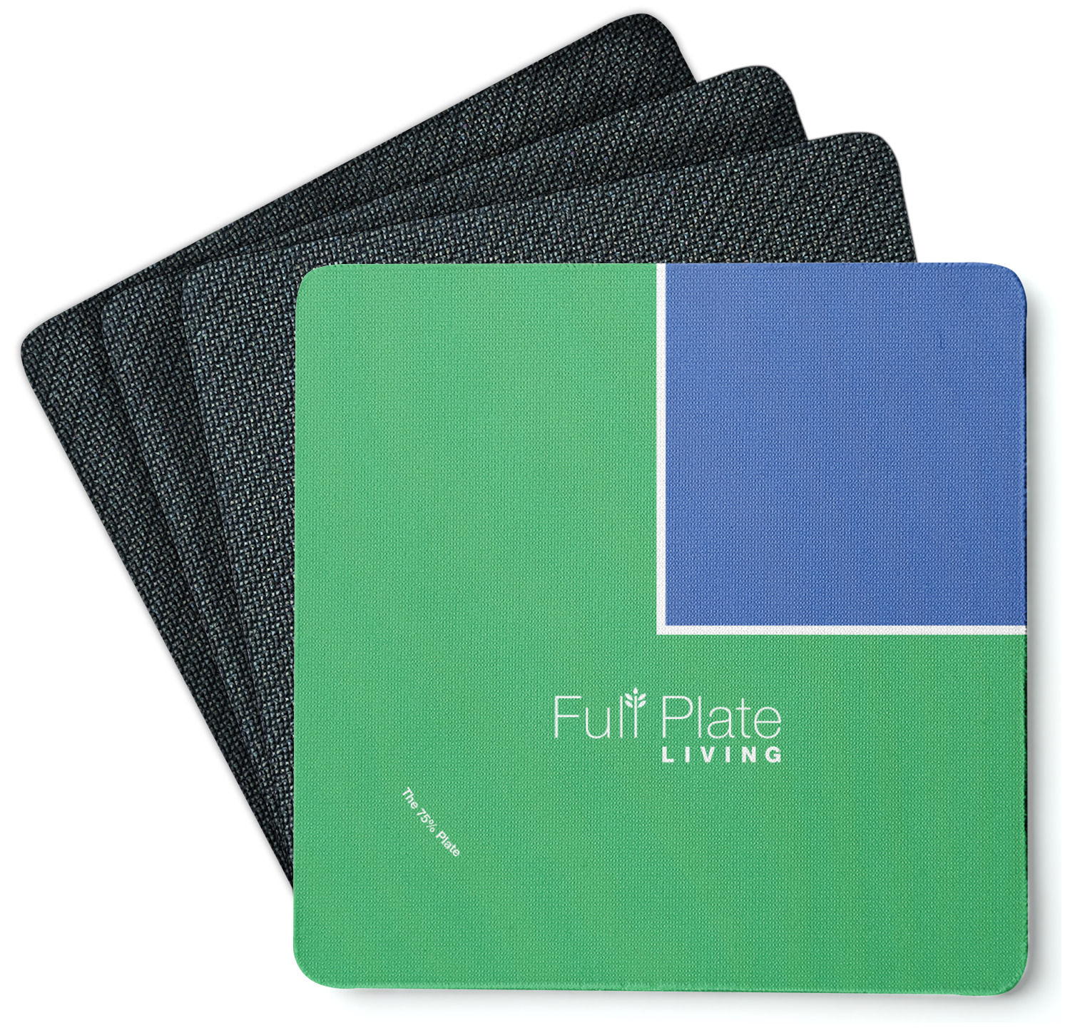 These drink coasters have a smooth, polyester top and a textured, rubber backing on its bottom. The non-slip rubber backing underneath works to keep any spills at bay. At 4 by 4 by 0.25 inches thick, these custom coasters are a suitable size for most drinkware. Your personalization is displayed atop the face of the cup coaster. We sell these rubber coasters in two different shapes: square and round. You can buy each shape as singulars or as a set of 4.