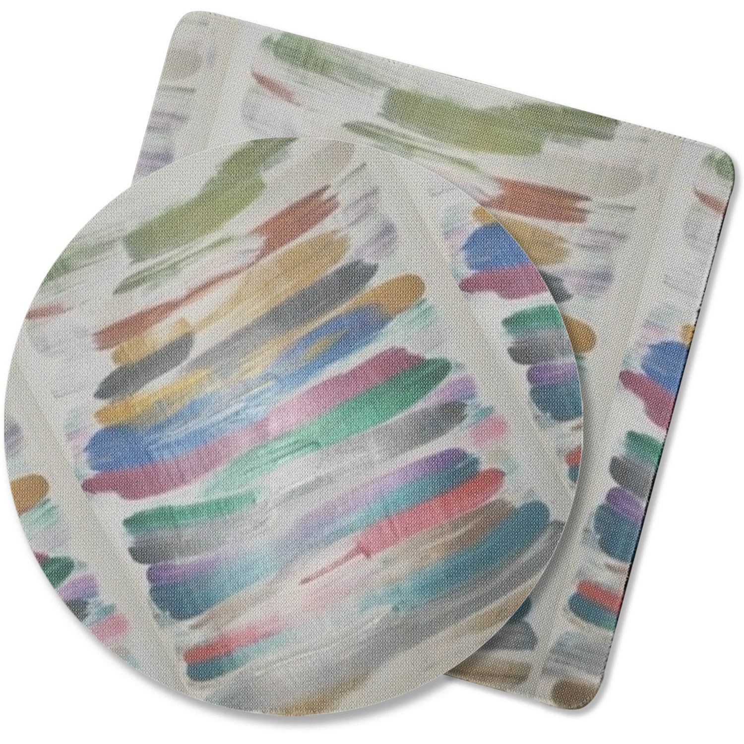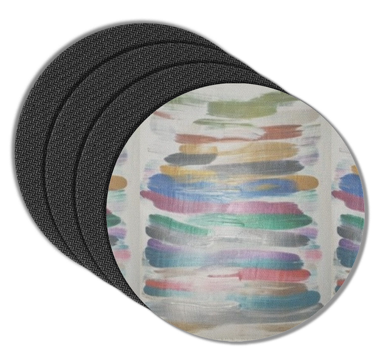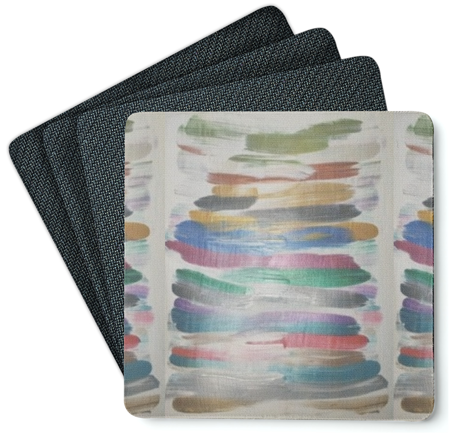 These drink coasters have a smooth, polyester top and a textured, rubber backing on its bottom. The non-slip rubber backing underneath works to keep any spills at bay. At 4 by 4 by 0.25 inches thick, these custom coasters are a suitable size for most drinkware. Your personalization is displayed atop the face of the cup coaster. We sell these rubber coasters in two different shapes: square and round. You can buy each shape as singulars or as a set of 4.