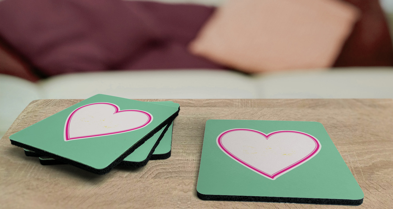 These drink coasters have a smooth, polyester top and a textured, rubber backing on its bottom. The non-slip rubber backing underneath works to keep any spills at bay. At 4 by 4 by 0.25 inches thick, these custom coasters are a suitable size for most drinkware. Your personalization is displayed atop the face of the cup coaster. We sell these rubber coasters in two different shapes: square and round. You can buy each shape as singulars or as a set of 4.