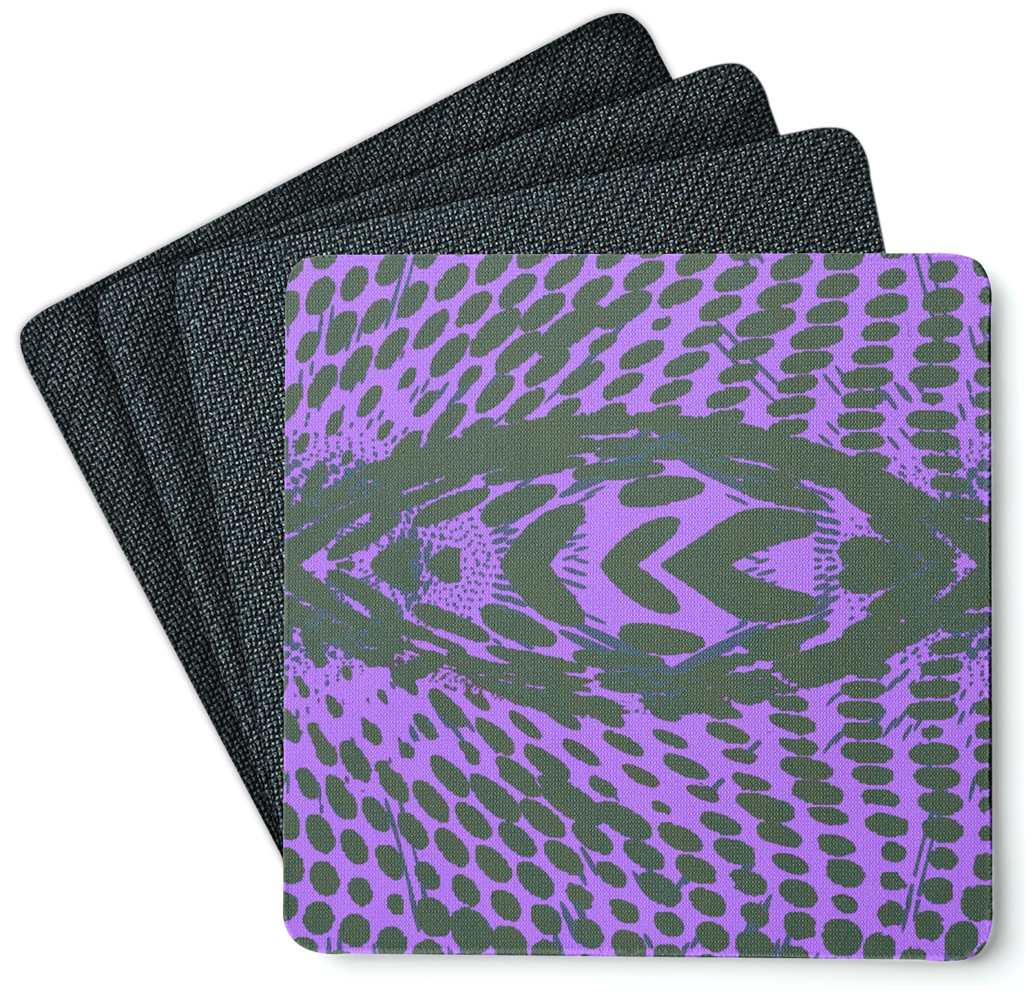 These drink coasters have a smooth, polyester top and a textured, rubber backing on its bottom. The non-slip rubber backing underneath works to keep any spills at bay. At 4 by 4 by 0.25 inches thick, these custom coasters are a suitable size for most drinkware. Your personalization is displayed atop the face of the cup coaster. We sell these rubber coasters in two different shapes: square and round. You can buy each shape as singulars or as a set of 4.