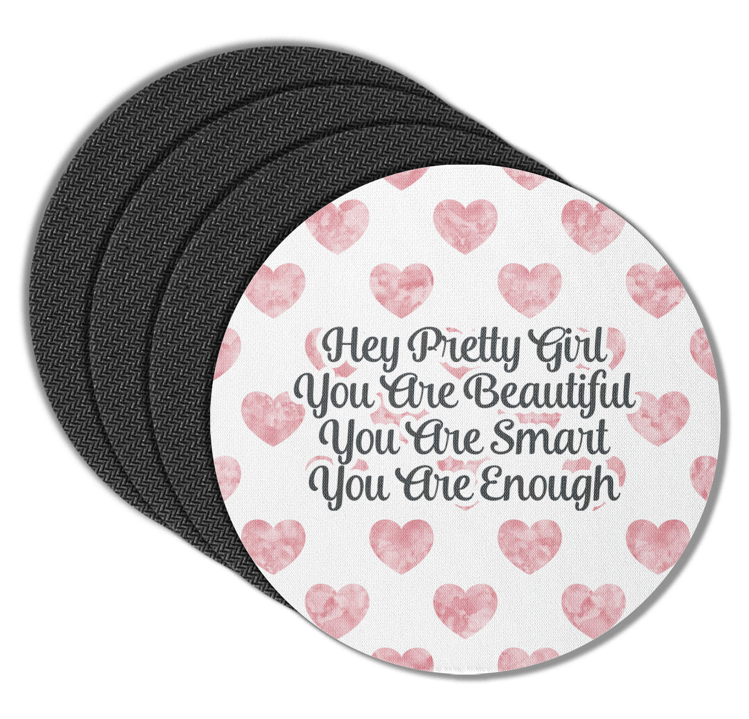 These drink coasters have a smooth, polyester top and a textured, rubber backing on its bottom. The non-slip rubber backing underneath works to keep any spills at bay. At 4 by 4 by 0.25 inches thick, these custom coasters are a suitable size for most drinkware. Your personalization is displayed atop the face of the cup coaster. We sell these rubber coasters in two different shapes: square and round. You can buy each shape as singulars or as a set of 4.