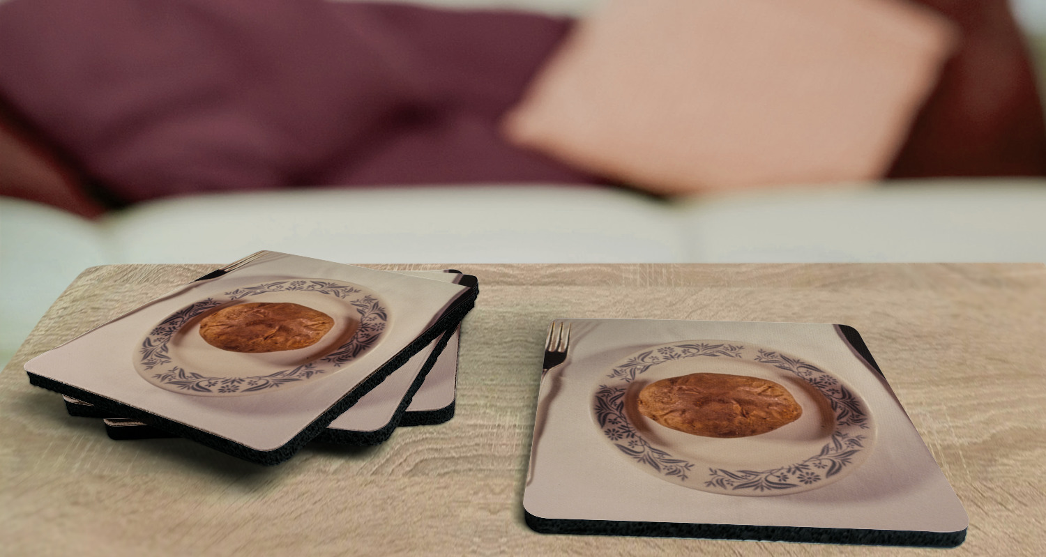 These drink coasters have a smooth, polyester top and a textured, rubber backing on its bottom. The non-slip rubber backing underneath works to keep any spills at bay. At 4 by 4 by 0.25 inches thick, these custom coasters are a suitable size for most drinkware. Your personalization is displayed atop the face of the cup coaster. We sell these rubber coasters in two different shapes: square and round. You can buy each shape as singulars or as a set of 4.