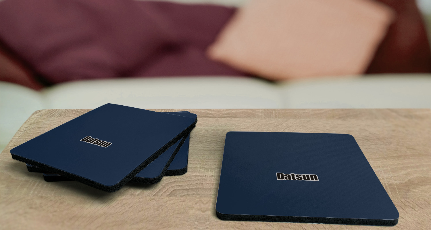 These drink coasters have a smooth, polyester top and a textured, rubber backing on its bottom. The non-slip rubber backing underneath works to keep any spills at bay. At approximately 4"x4" and 0.25" thick, these custom coasters are a suitable size for most drinkware. Your personalization is displayed atop the face of the cup coaster. We sell these rubber coasters in two different shapes: square and round. You can buy each shape as singulars or as a set of 4.