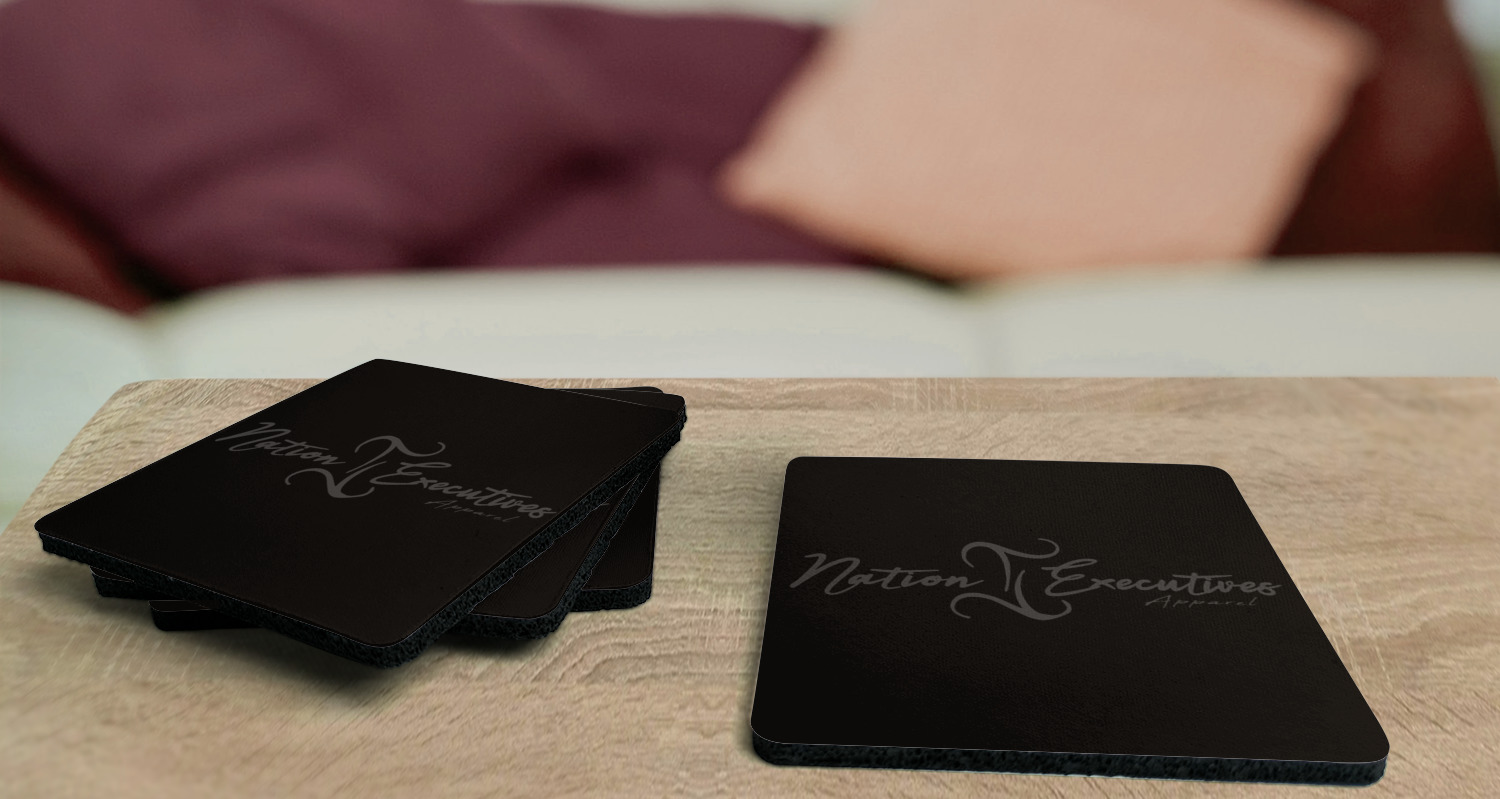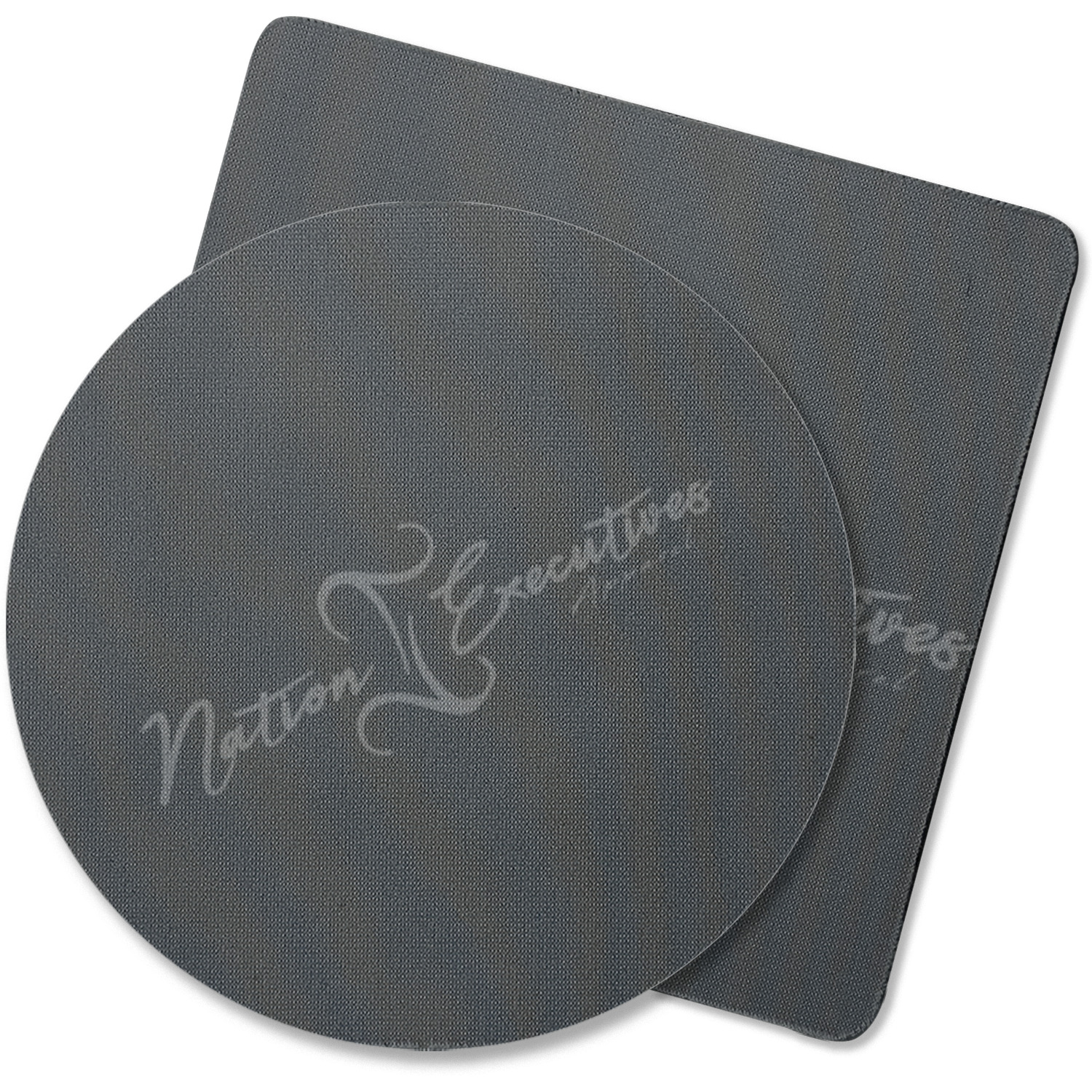 These drink coasters have a smooth, polyester top and a textured, rubber backing on its bottom. The non-slip rubber backing underneath works to keep any spills at bay. At 4 by 4 by 0.25 inches thick, these custom coasters are a suitable size for most drinkware. Your personalization is displayed atop the face of the cup coaster. We sell these rubber coasters in two different shapes: square and round. You can buy each shape as singulars or as a set of 4.