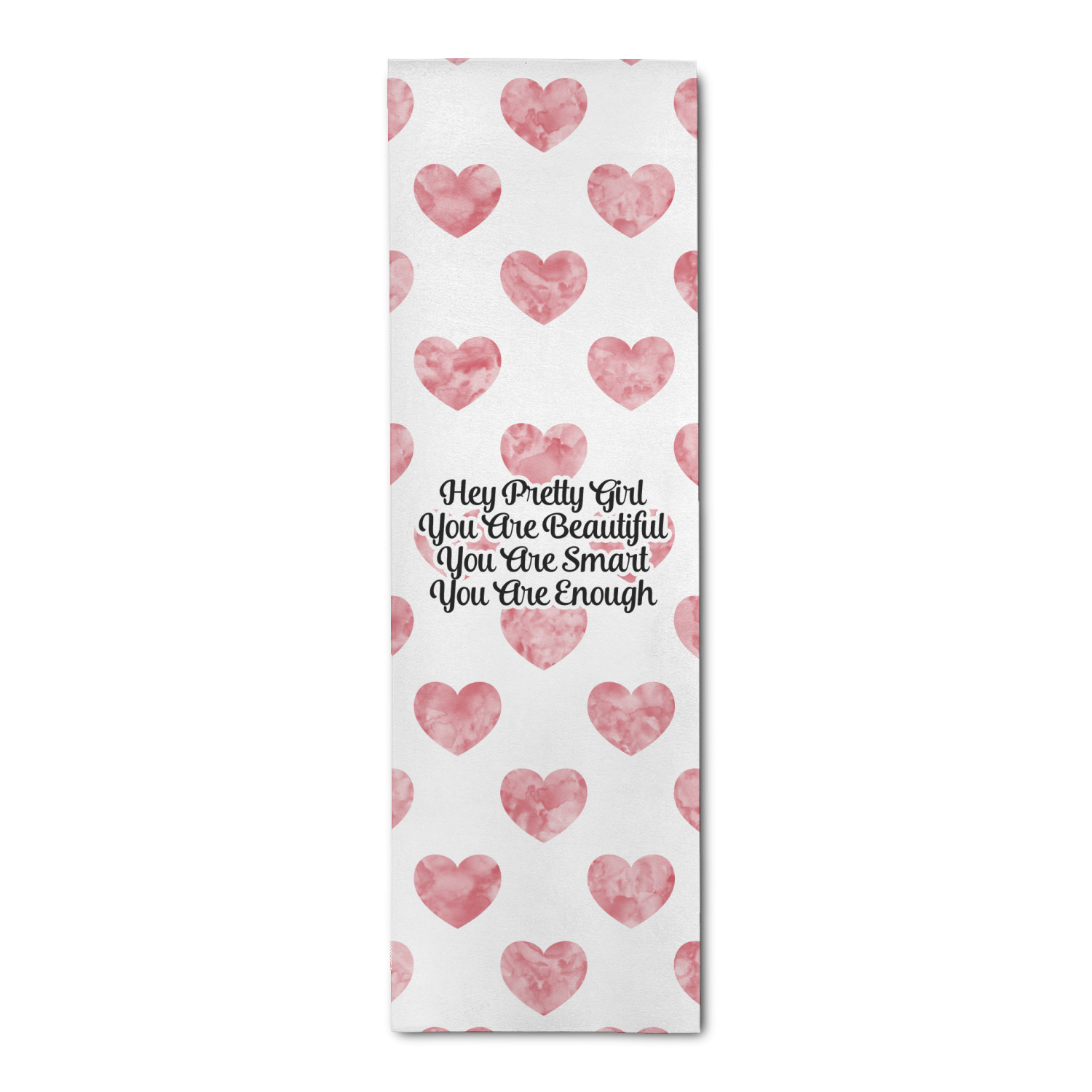 Our custom runner rugs and area rugsare both velvety soft and smooth, with a short pile, beautiful sewn corners and edges on the poly chenille face. We recommend adding an anti-slip mat under your runner rug to prevent it from sliding when under foot when placed on hard or smooth surfaces.