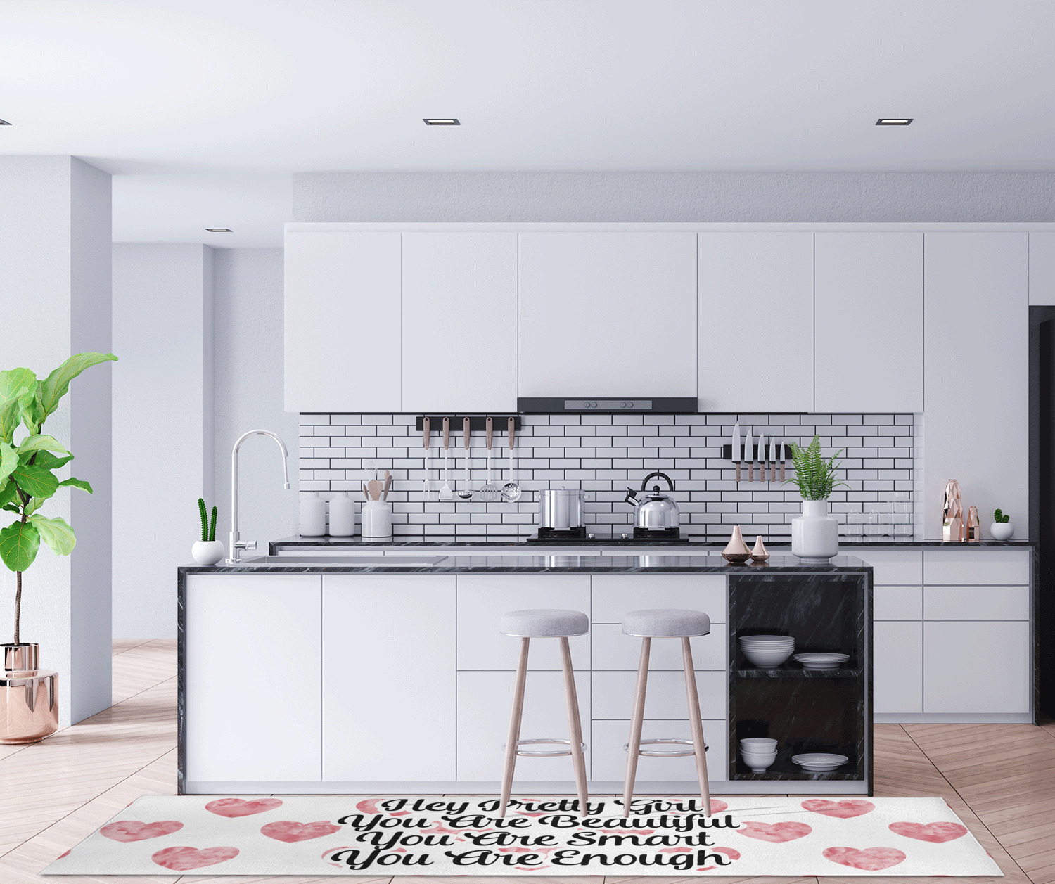 If you want to design it for your hallway - a vertical design is the perfect fit. If designing for to go in front of your kitchen island a horizontal design would suit you best! In our design system you can rotate the design either way to get the product you want.