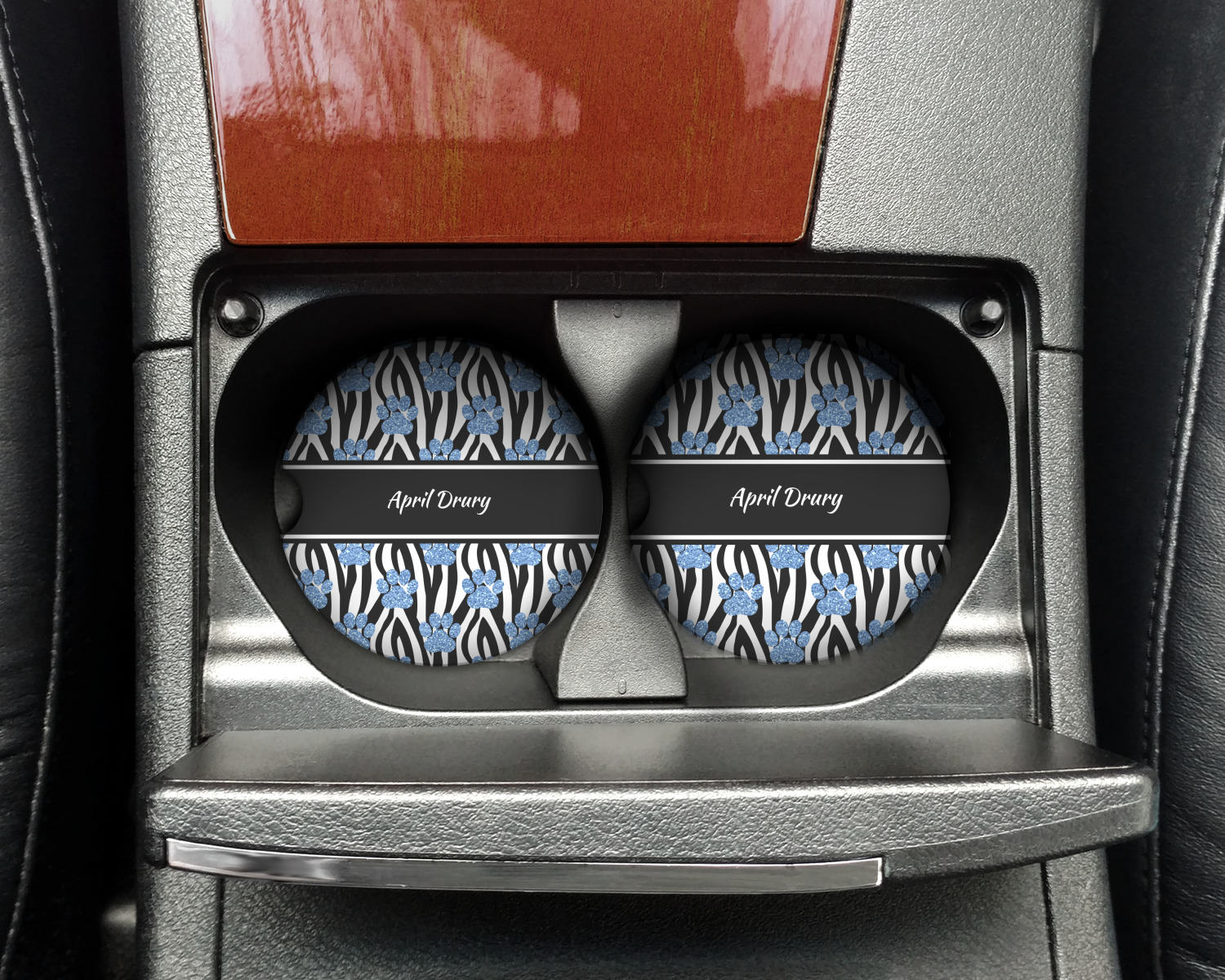 These sandstone coasters are round, robust, and feature a smoothed glossy side to exhibit your customized design. With a 2.5 inch diameter, these stone coasters will fit snugly inside most cup holders. This model also features a semi-circle shaped divot that allows for easy removal, despite the tight fit. You can purchase these car cup holder coasters in a pair, or singularly, depending on your needs.