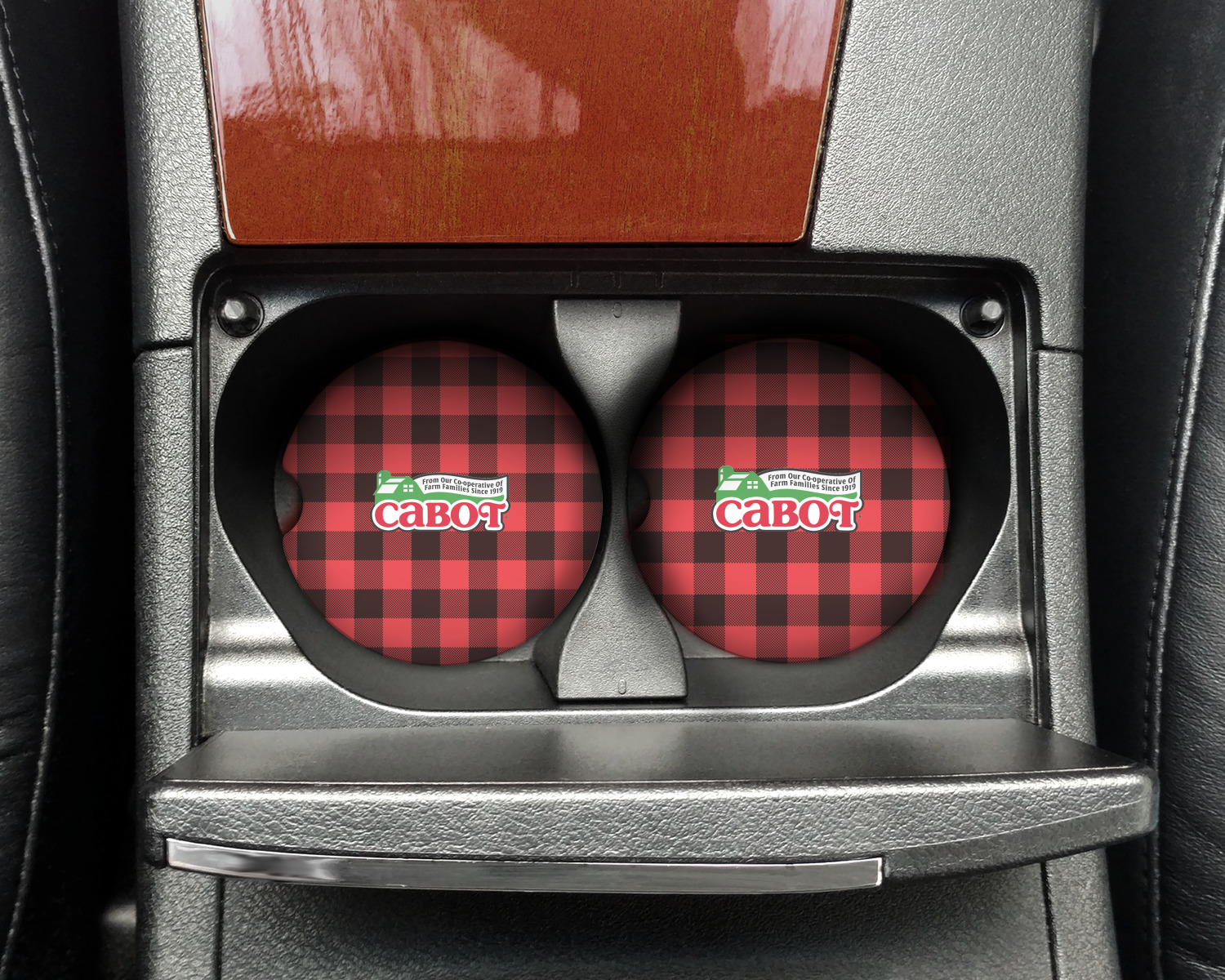 These sandstone coasters are round, robust, and feature a smoothed glossy side to exhibit your customized design. With a 2.5 inch diameter, these stone coasters will fit snugly inside most cup holders. This model also features a semi-circle shaped divot that allows for easy removal, despite the tight fit. You can purchase these car cup holder coasters in a pair, or singularly, depending on your needs.