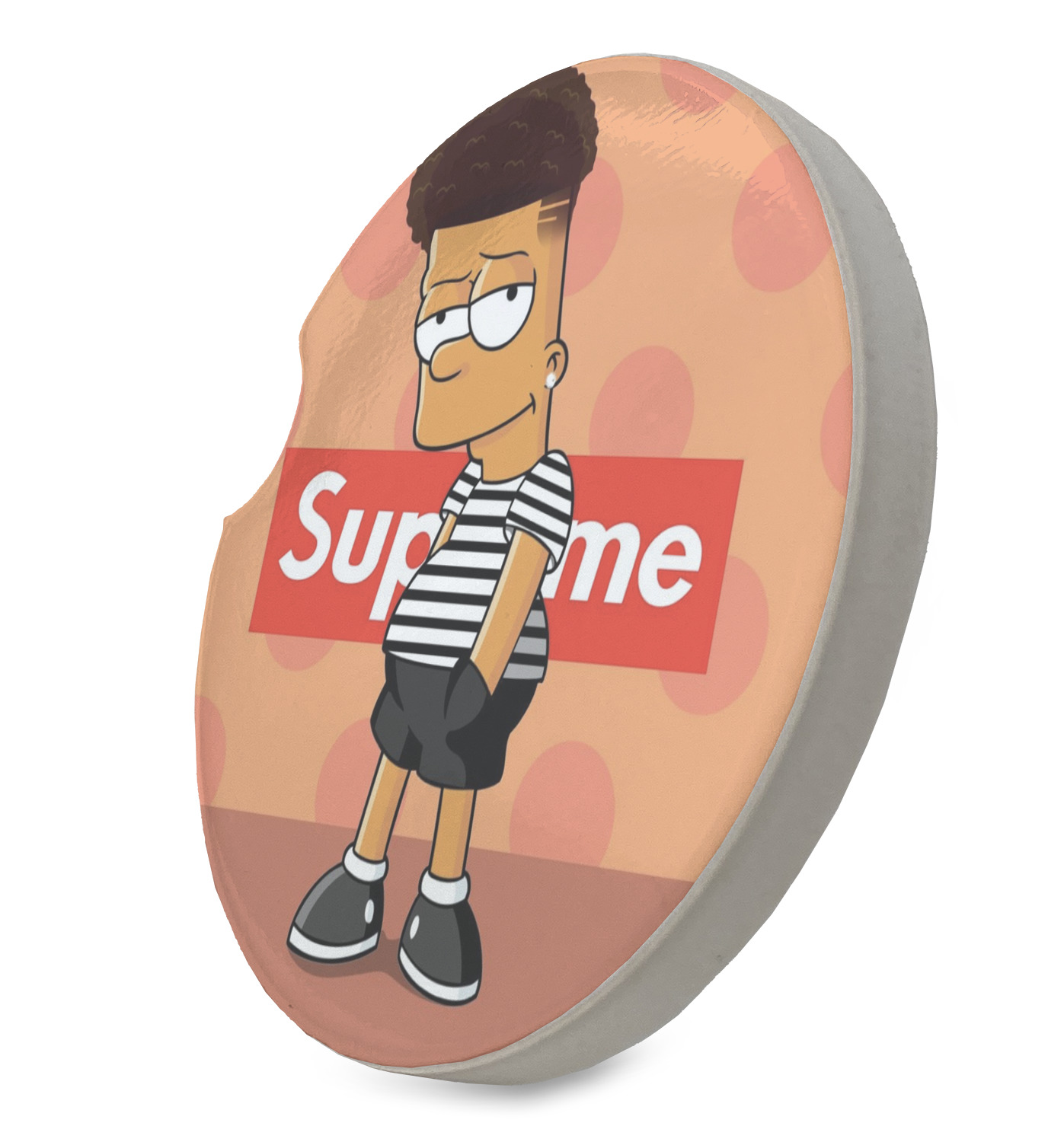 These sandstone coasters are round, robust, and feature a smoothed glossy side to exhibit your customized design. With a 2.5 inch diameter, these stone coasters will fit snugly inside most cup holders. This model also features a semi-circle shaped divot that allows for easy removal, despite the tight fit. You can purchase these car cup holder coasters in a pair, or singularly, depending on your needs.