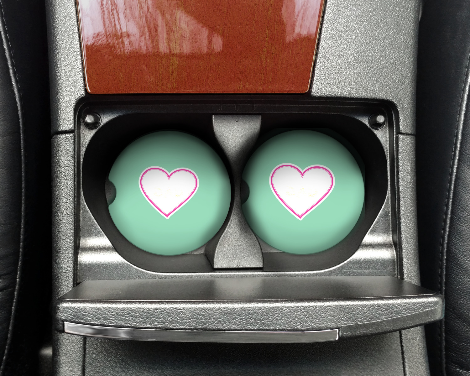 These sandstone coasters are round, robust, and feature a smoothed glossy side to exhibit your customized design. With a 2.5 inch diameter, these stone coasters will fit snugly inside most cup holders. This model also features a semi-circle shaped divot that allows for easy removal, despite the tight fit. You can purchase these car cup holder coasters in a pair, or singularly, depending on your needs.