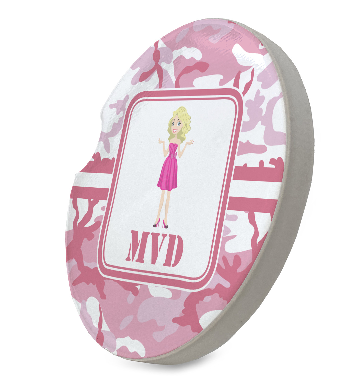 These sandstone coasters are round, robust, and feature a smoothed glossy side to exhibit your customized design. With a 2.5 inch diameter, these stone coasters will fit snugly inside most cup holders. This model also features a semi-circle shaped divot that allows for easy removal, despite the tight fit. You can purchase these car cup holder coasters in a pair, or singularly, depending on your needs.