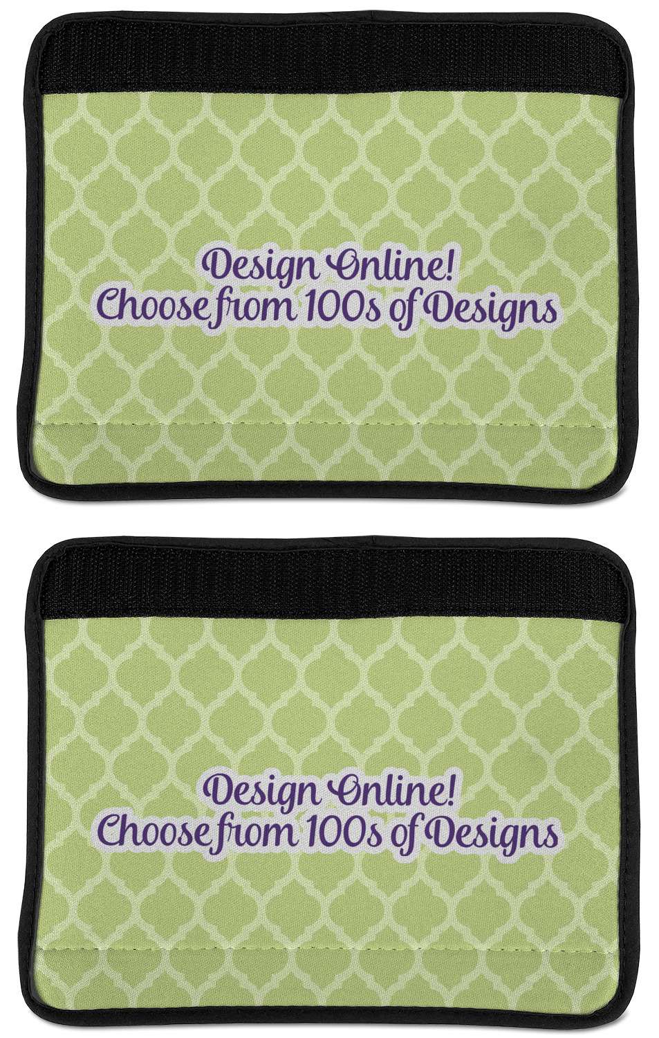 Made from neoprene, our seat belt strap covers wrap around the belt itself and have a Velcro tab for easy attachment and closure. The belt's edges are trimmed with a black polyester for a secure finish. Each cover is 9.5 by 7 inches when open and 9.5 by 2.5 inches when closed. We print your personalized design on the face of the seat belt pad.