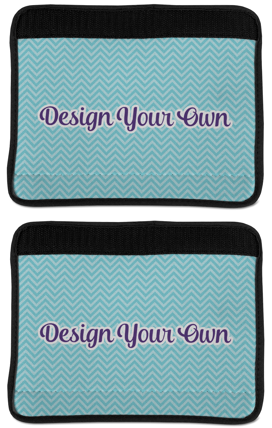 Made from neoprene, our seat belt strap covers wrap around the belt itself and have a Velcro tab for easy attachment and closure. The belt's edges are trimmed with a black polyester for a secure finish. Each cover is 9.5 by 7 inches when open and 9.5 by 2.5 inches when closed. We print your personalized design on the face of the seat belt pad.