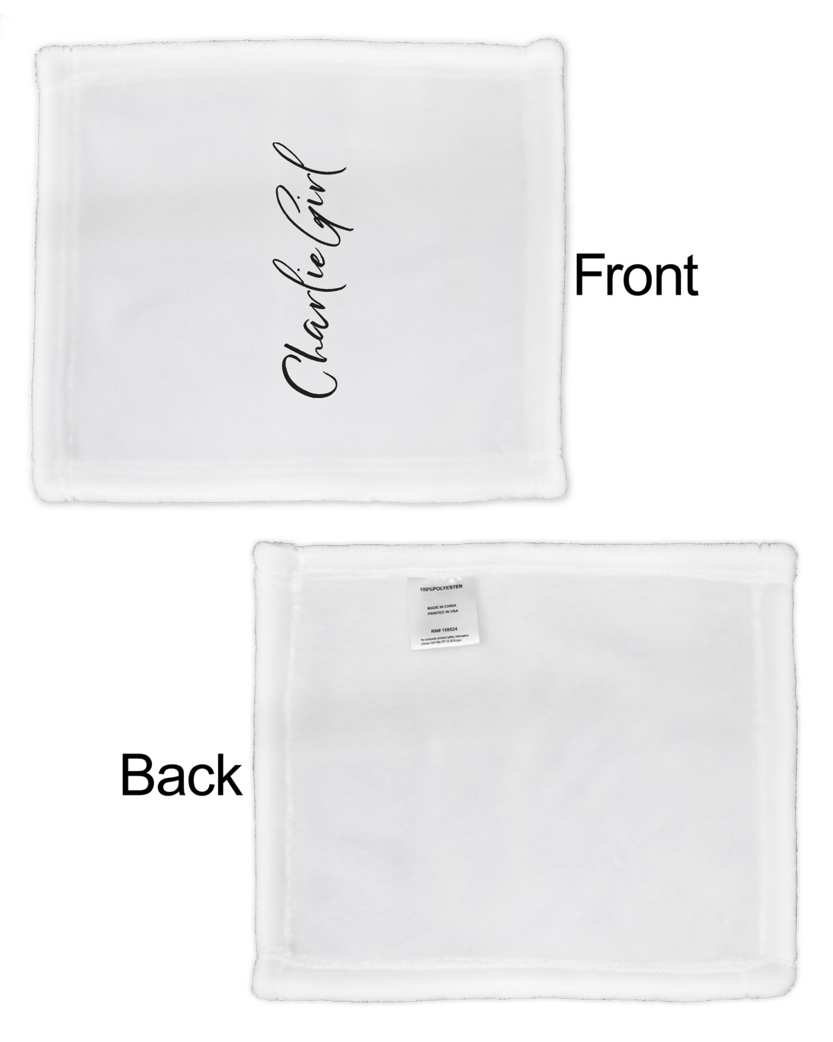 Crafted from an ultra soft fleece, these lovey blankets are the perfect, portable size to follow your child on any of his or her adventures. The plush texture also makes them ideal for naptime. Each personalized baby blanket measures at approximately 12 by 11 inches.