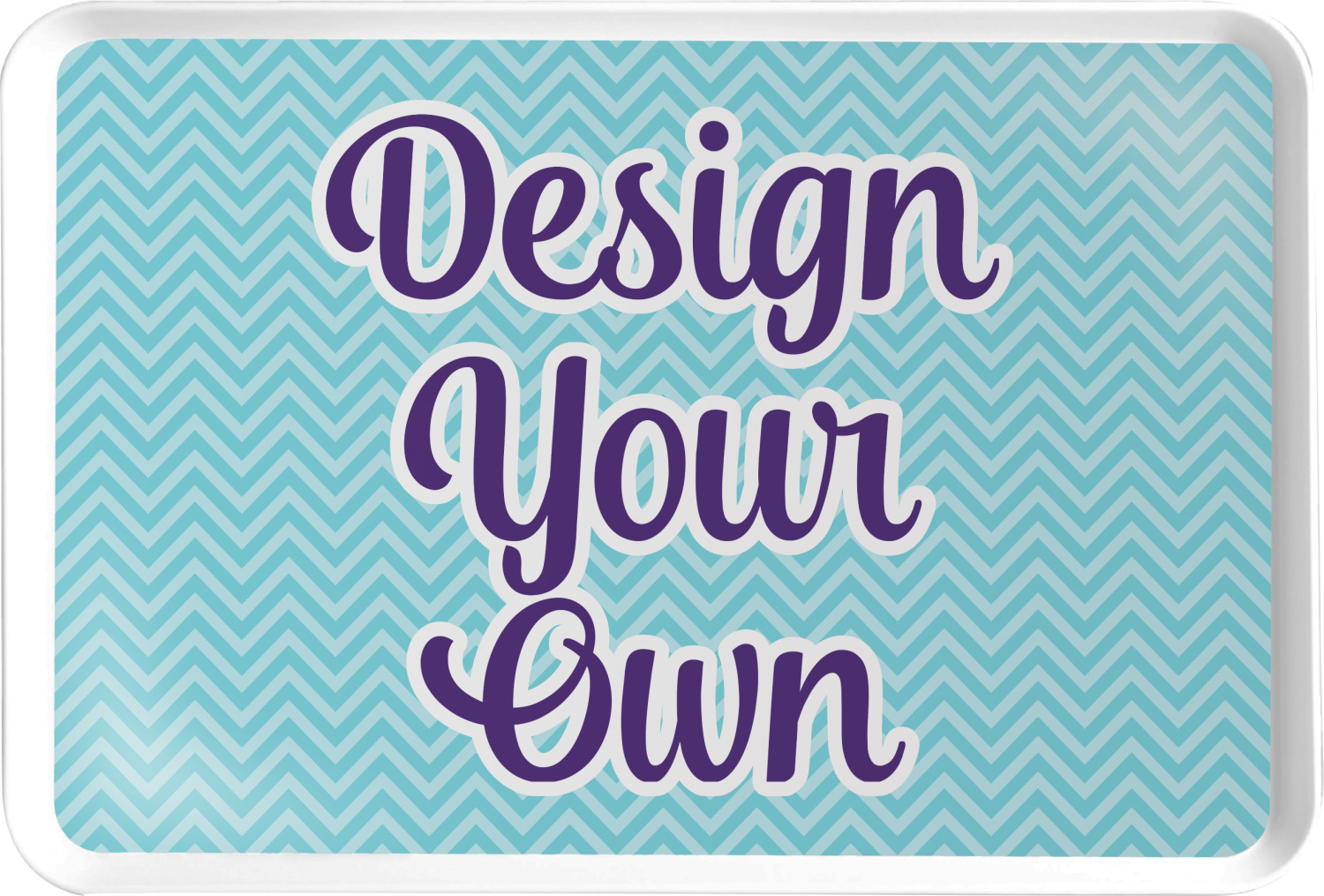 Made from a heavy melamine, these decorative trays are break resistant and are BPA free. At 14" x 9.25", these serving dishes are spacious enough to accommodate several drinks, bowls, or more. The tray features ridges underneath that allow for a sturdy stance upon any table or counter-top. We display your customization at the bottom of the tray's interior, while the remaining sides of the tray are a chic white.