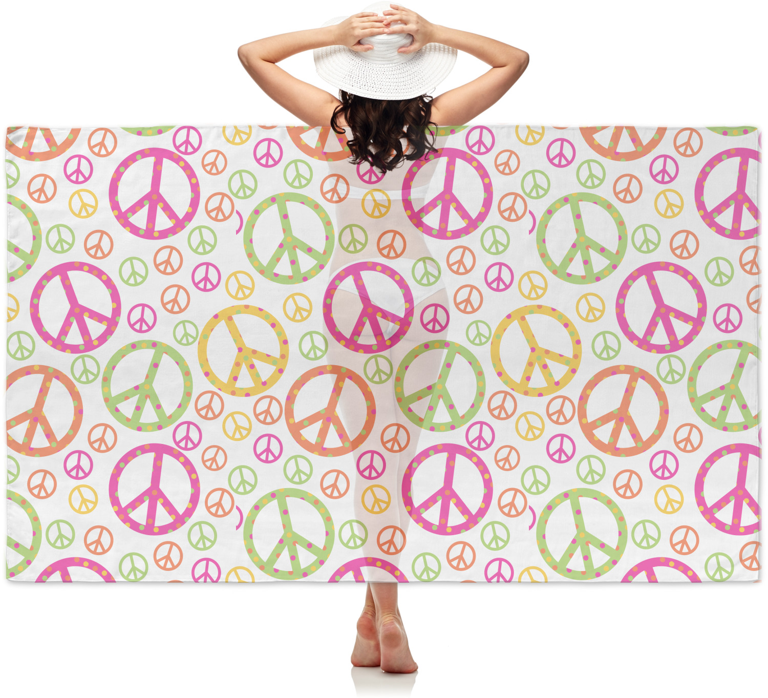 This sarong is 42" x 70" of personalized beauty. It is made of a soft polyester for comfort when against your skin. The material is sheer, so it serves well as a swimsuit cover-up or a shawl. There are so many uses for this wonderful product that you will be sure to find when it is in your hands.