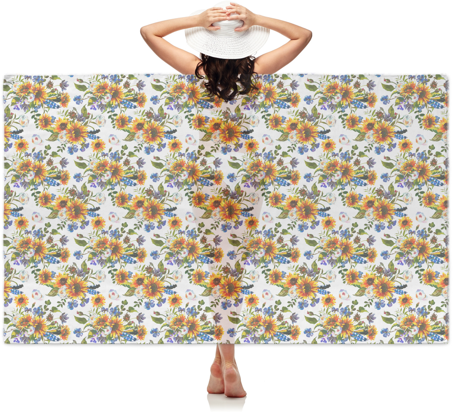 This sarong is 42" x 70" of personalized beauty. It is made of a soft polyester for comfort when against your skin. The material is sheer, so it serves well as a swimsuit cover-up or a shawl. There are so many uses for this wonderful product that you will be sure to find when it is in your hands.