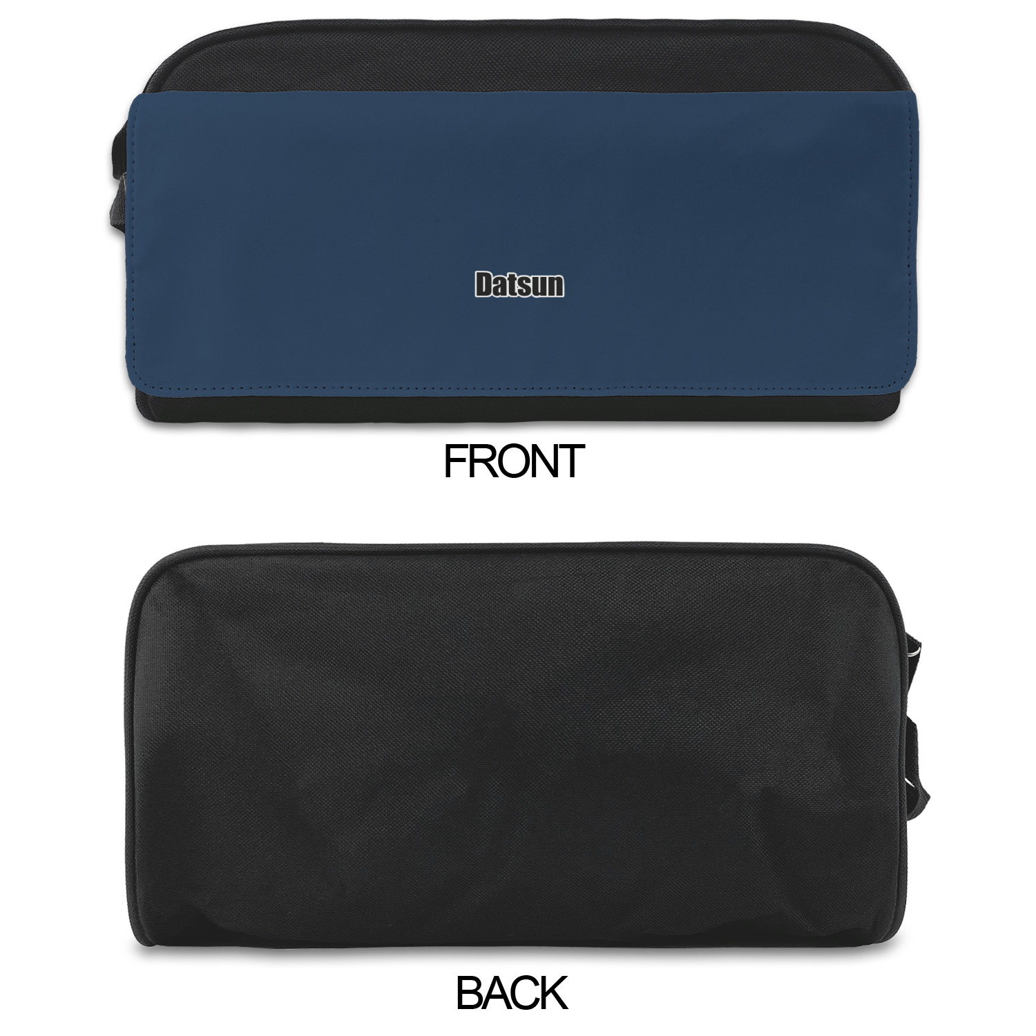 This shoe bag has a large opening to fit your shoes and a double zipper and velcro flap to close it. The small side pouch has a flap that can be customized to your liking. For handling, there is a looped handle on the end so it can easily be held or for using it to clip to a bag. Great for golf shoes and match the flap to your bag and clubs or for sports shoes and have your team and player information on the flap. If you aren't the athlete type, this bag is perfectly suited for the traveler looking to keep their shoes separate from their clothes. It would also be a great complement to one of our custom suitcases.