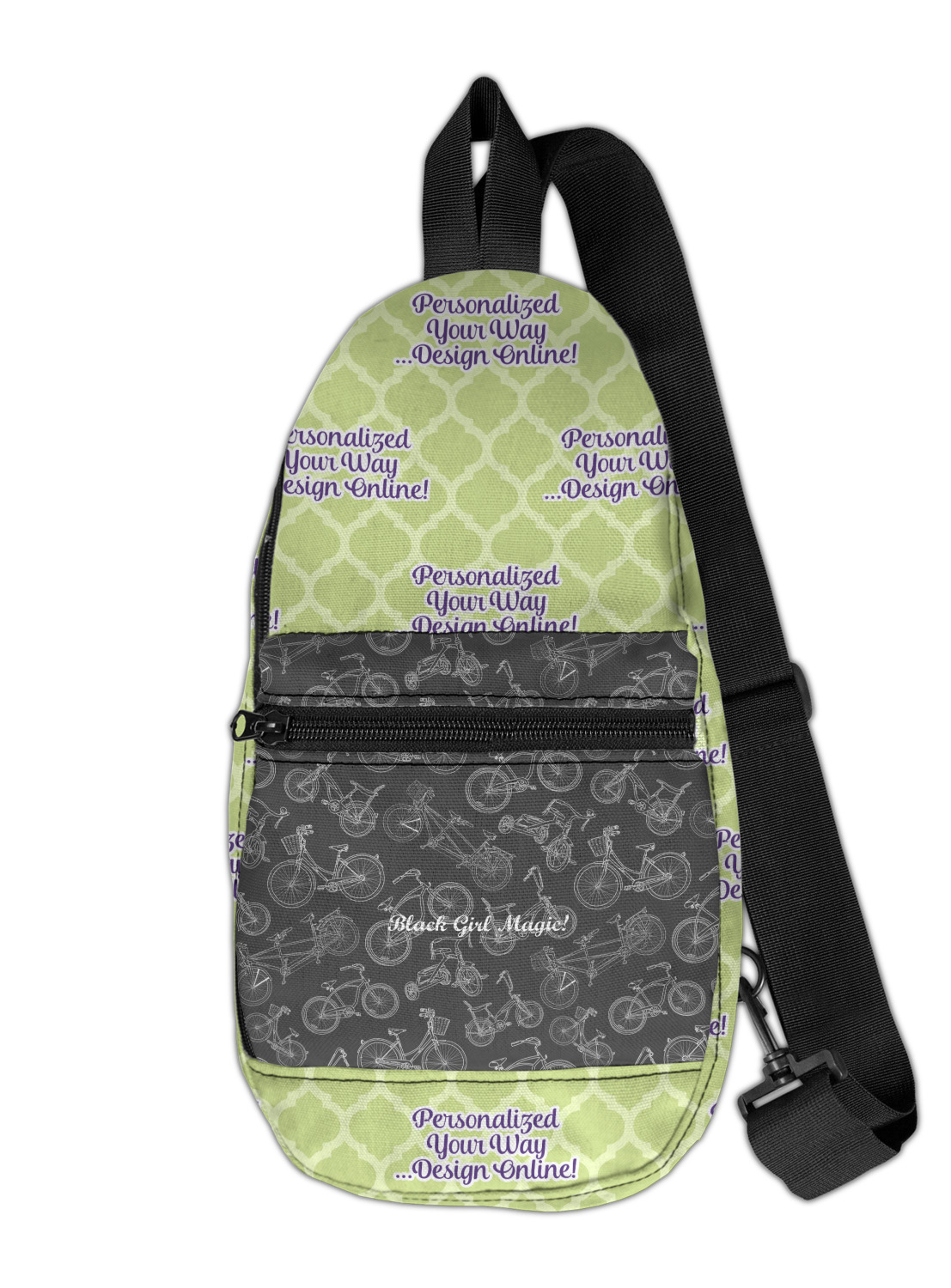 These sling bags are made from a durable polyester canvas. The fabric is printed with your design, then cut and hand sewn right here in the USA.