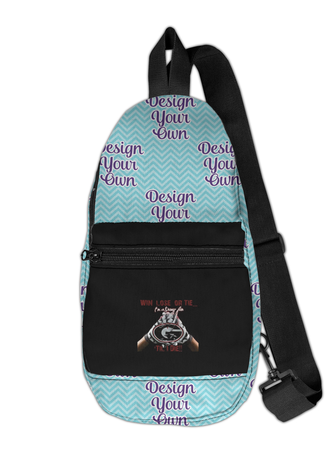 These sling bags are made from a durable polyester canvas. The fabric is printed with your design, then cut and hand sewn right here in the USA.