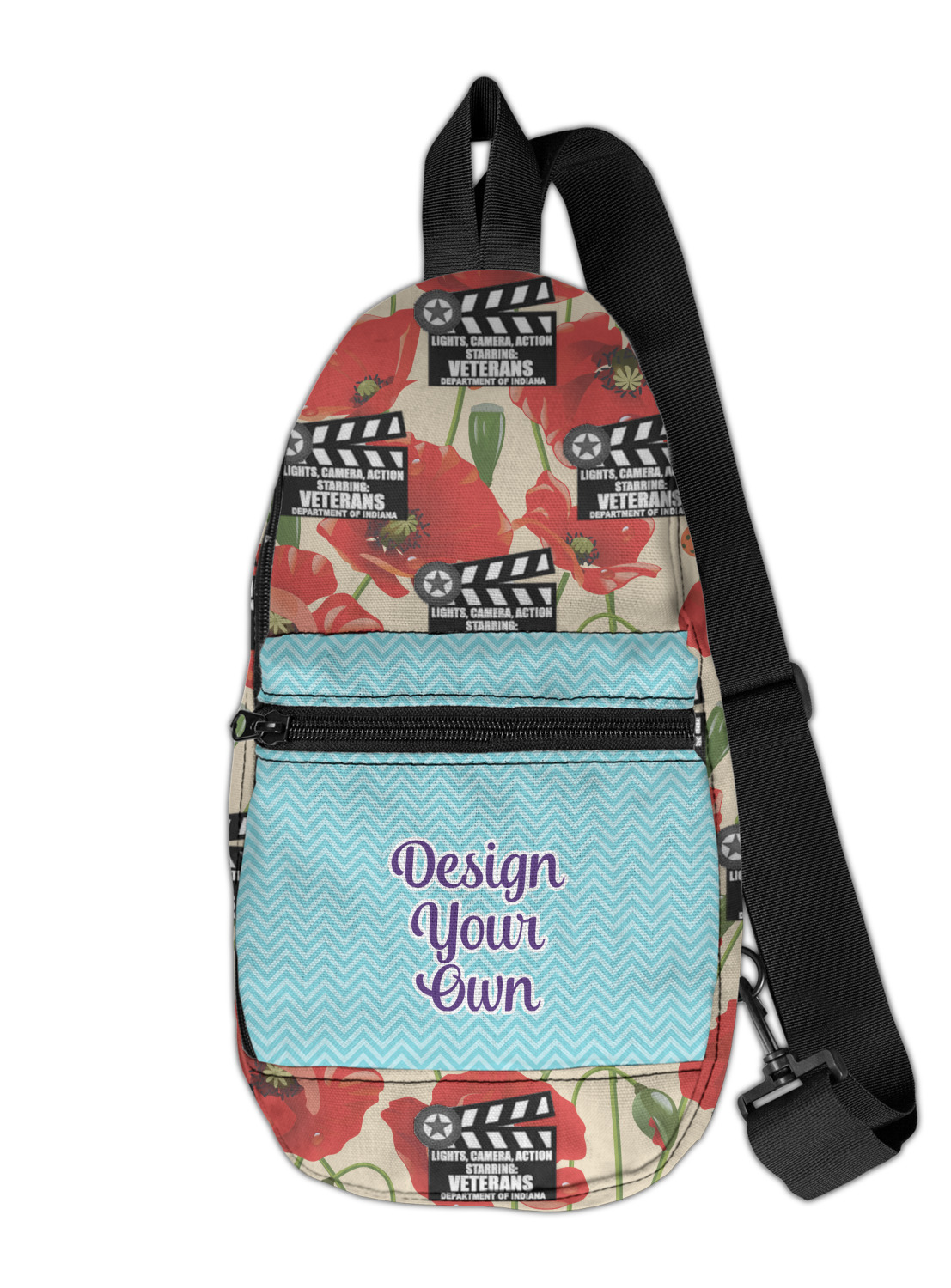 These sling bags are made from a durable polyester canvas. The fabric is printed with your design, then cut and hand sewn right here in the USA.