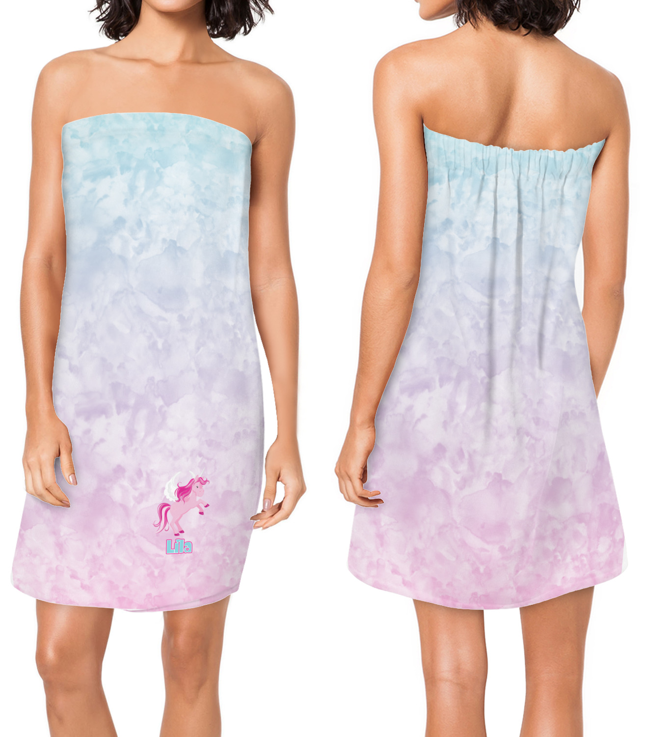 Made from a plush, fleece fabric, these luxurious towel wraps are comfortable and absorbent. They are printed, cut, and sewn for you, right here in the USA, after you place your order. These personalized bath wraps measure at approximately 59 by 32 inches, and display your customization across the outside.