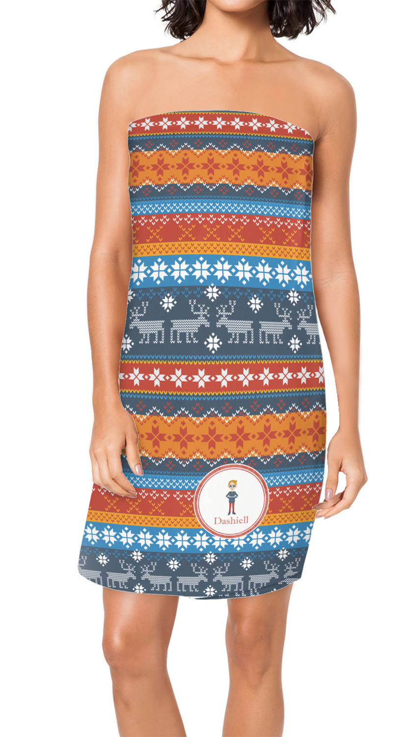 Made from a plush, fleece fabric, these luxurious towel wraps are comfortable and absorbent. They are printed, cut, and sewn for you, right here in the USA, after you place your order. These personalized bath wraps measure at approximately 59 by 32 inches, and display your customization across the outside.