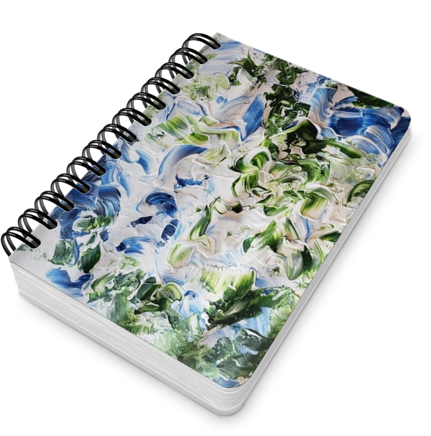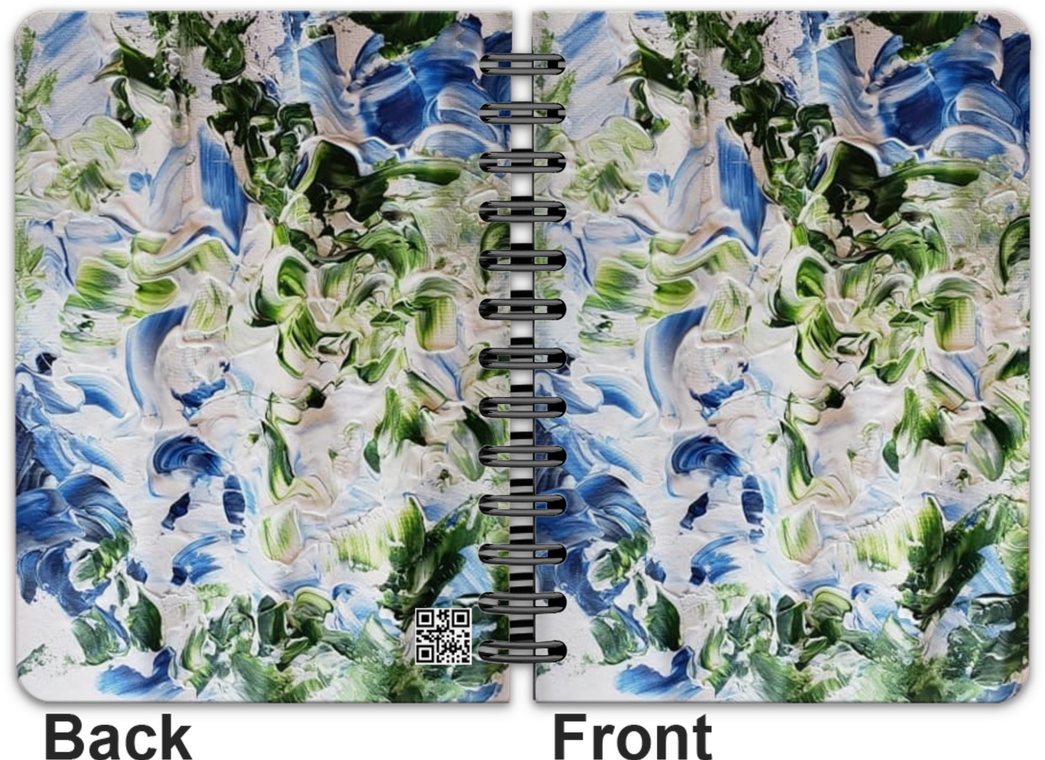 This spiral journal is available in two sizes. The first size is more suitable for a tote or purse and measures at 7" x 5". The second option is a bit larger, at 10" x 7", and is a better fit for a briefcase or backpack.