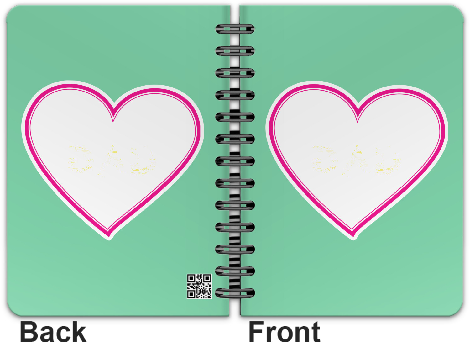 This spiral notebook includes 75 sheets of thick, ruled paper. The front and back of this custom notebook is made of a robust, laminate, plastic covering. We print your personalization on these two panels, underneath a glossy finish, which emphasizes the colors of your design. The two panels and the sheets of paper are held together by a sturdy, black coil. The paper within your bound notebook is perforated for easy, clean tearing.