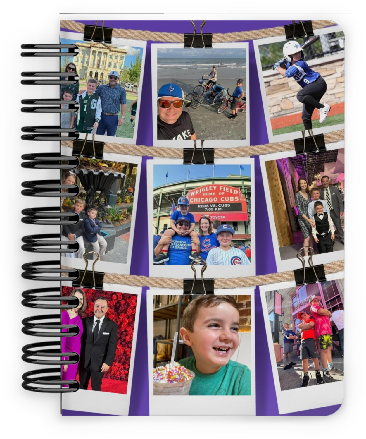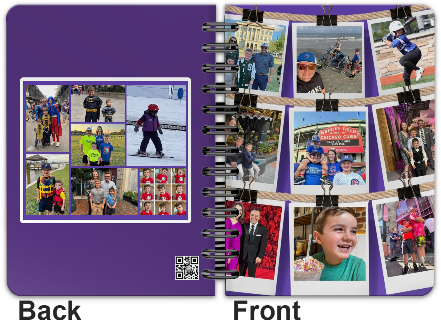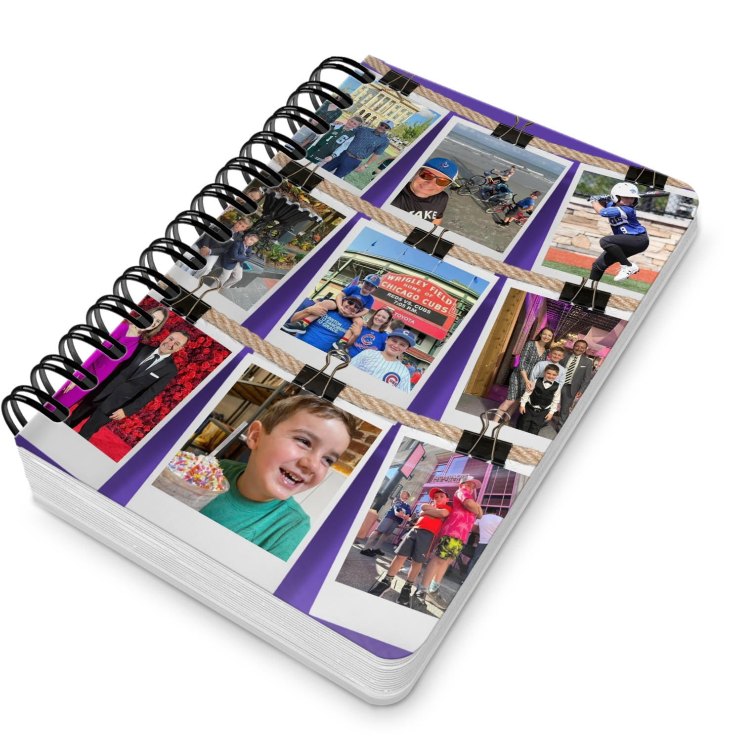 This spiral notebook includes 75 sheets of thick, ruled paper. The front and back of this custom notebook is made of a robust, laminate, plastic covering. We print your personalization on these two panels, underneath a glossy finish, which emphasizes the colors of your design. The two panels and the sheets of paper are held together by a sturdy, black coil. The paper within your bound notebook is perforated for easy, clean tearing.