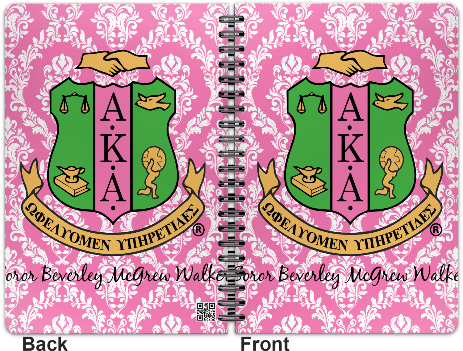 This spiral notebook includes 75 sheets of thick, ruled paper. The front and back of this custom notebook is made of a robust, laminate, plastic covering. We print your personalization on these two panels, underneath a glossy finish, which emphasizes the colors of your design. The two panels and the sheets of paper are held together by a sturdy, black coil. The paper within your bound notebook is perforated for easy, clean tearing.