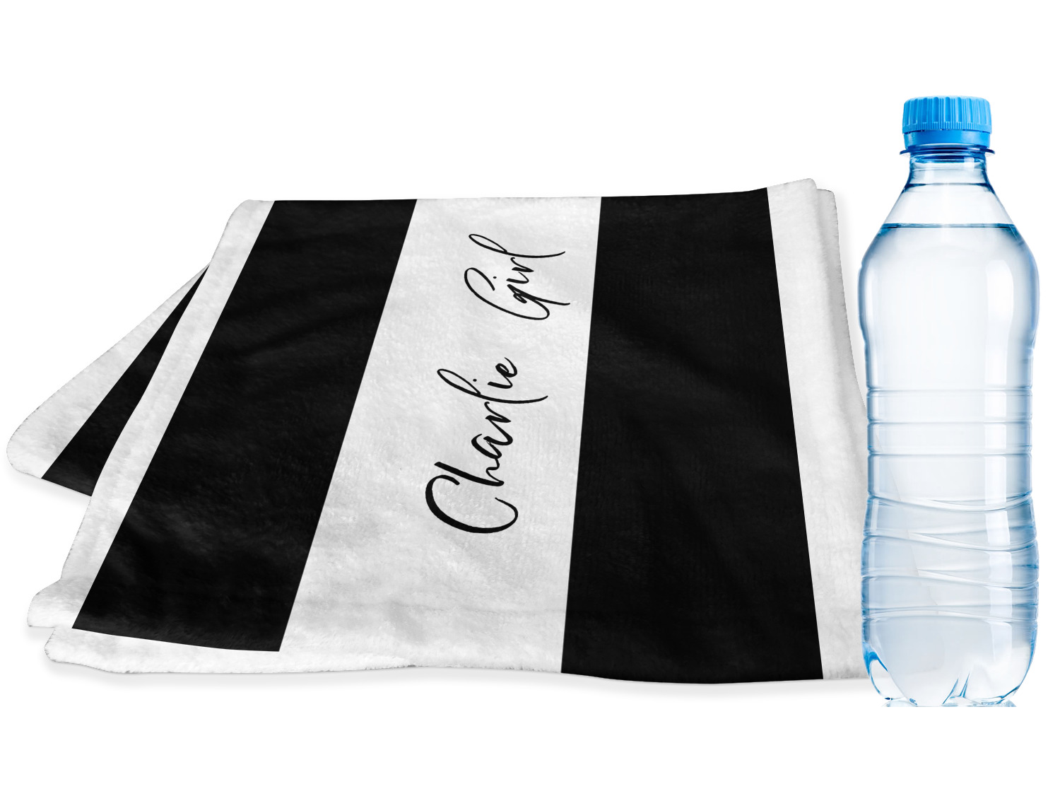 These towels are 44" x 12", which are the perfect size for hanging around your neck on the treadmill or wiping your brow after a hard workout. They are full-print towels with your very own design printed right on the front! They are perfect for soaking up moisture and are quite soft against your skin.
