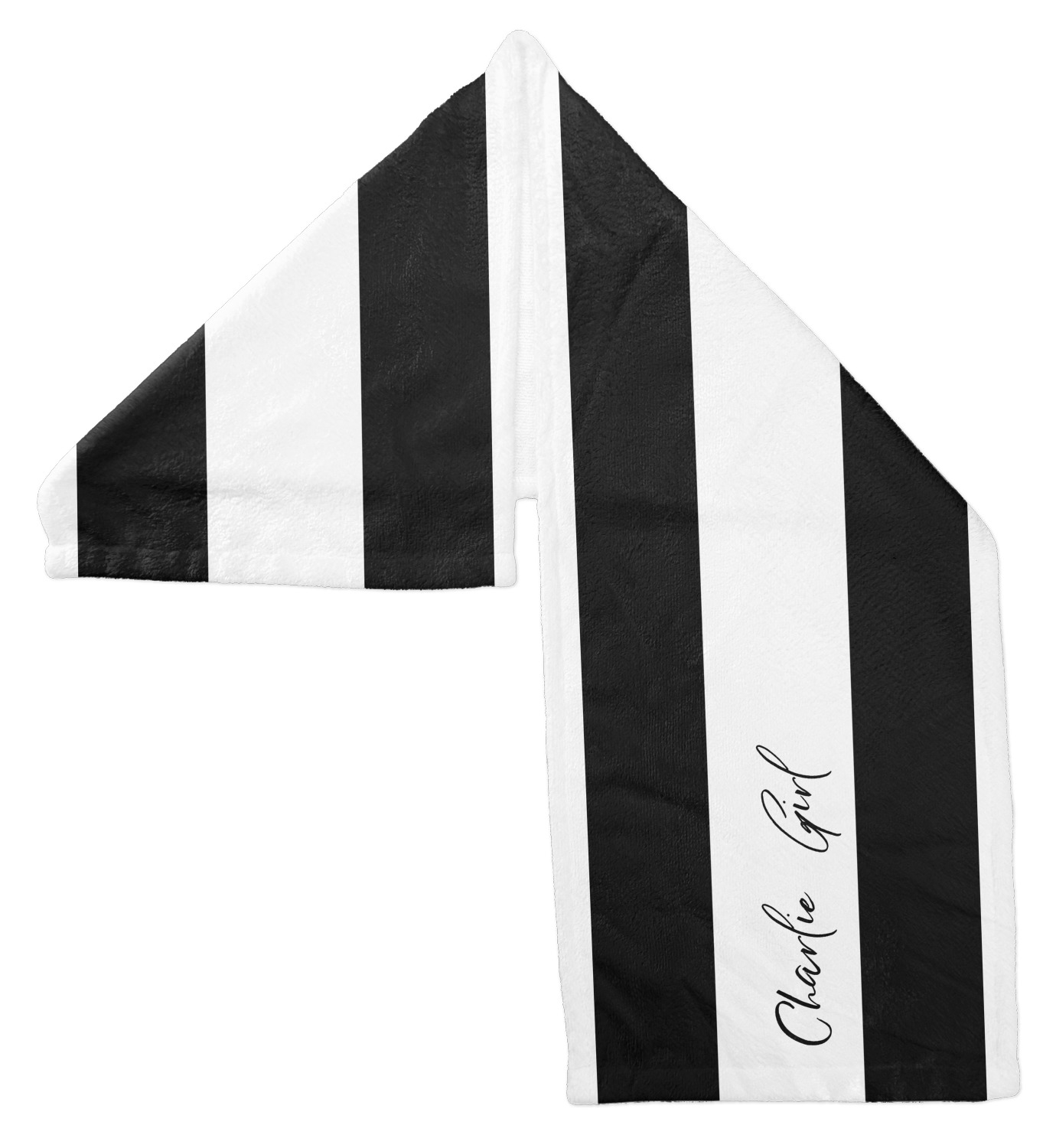 Create your very own design that will be printed horizontally on your towel. Start in one of our pre-made designs and change a little or change it all. You can pick which background, ribbon, font, label, and text you want! Create something that really shows off your personality.