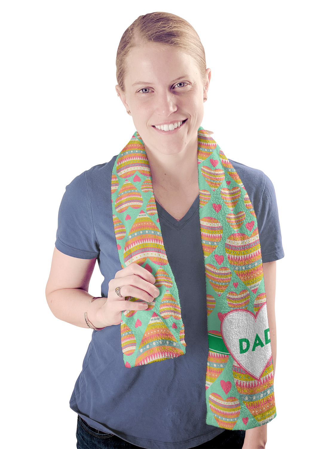 These towels are 44" x 12", which are the perfect size for hanging around your neck on the treadmill or wiping your brow after a hard workout. They are full-print towels with your very own design printed right on the front! They are perfect for soaking up moisture and are quite soft against your skin.
