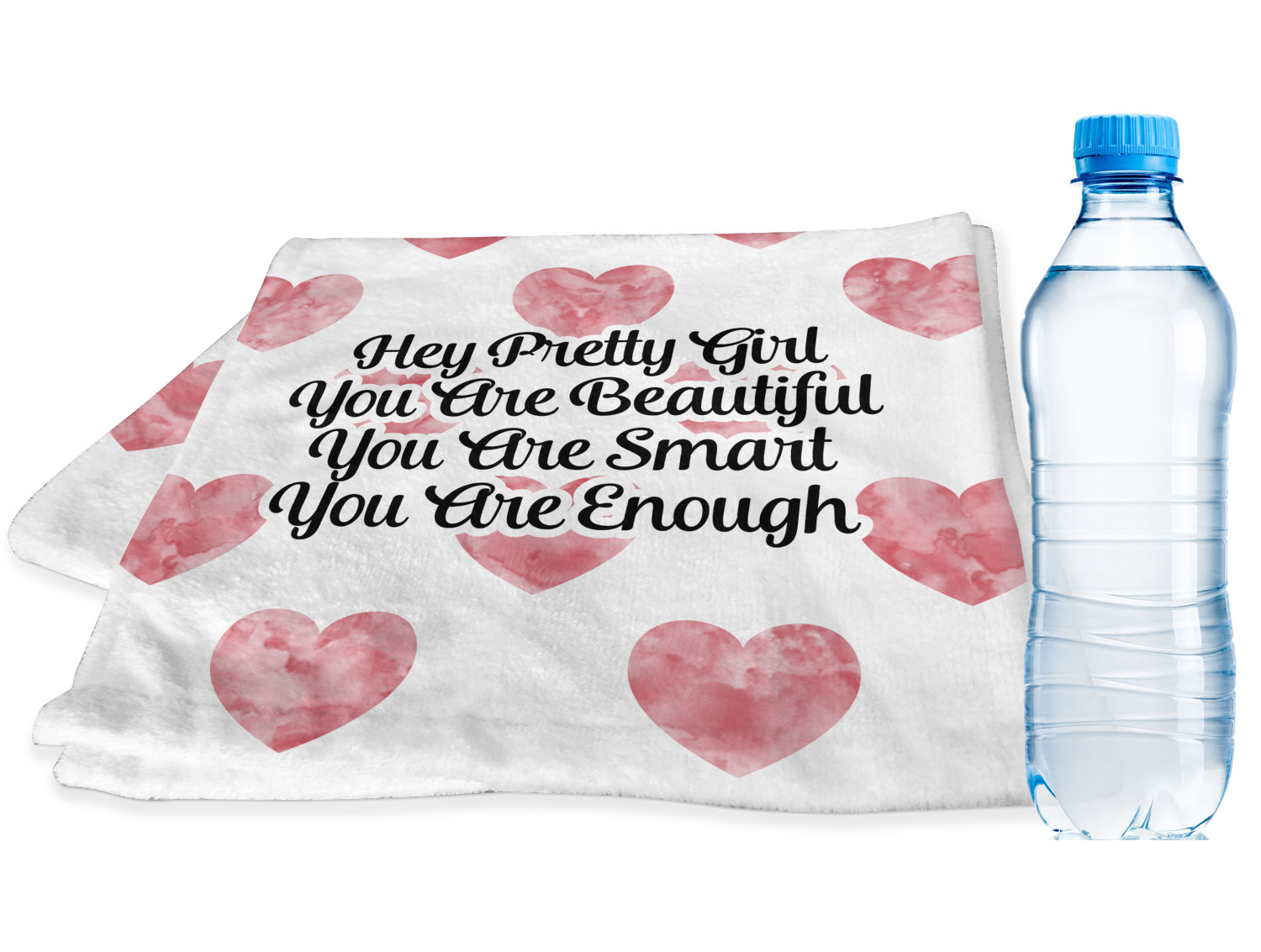 These towels are 44" x 12", which are the perfect size for hanging around your neck on the treadmill or wiping your brow after a hard workout. They are full-print towels with your very own design printed right on the front! They are perfect for soaking up moisture and are quite soft against your skin.