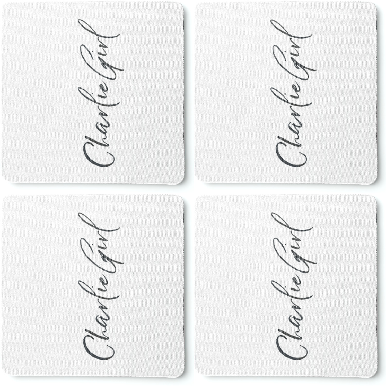These drink coasters have a smooth, polyester top and a textured, rubber backing on its bottom. The non-slip rubber backing underneath works to keep any spills at bay. At 4 by 4 by 0.25 inches thick, these custom coasters are a suitable size for most drinkware. Your personalization is displayed atop the face of the cup coaster. We sell these rubber coasters in two different shapes: square and round. You can buy each shape as singulars or as a set of 4.