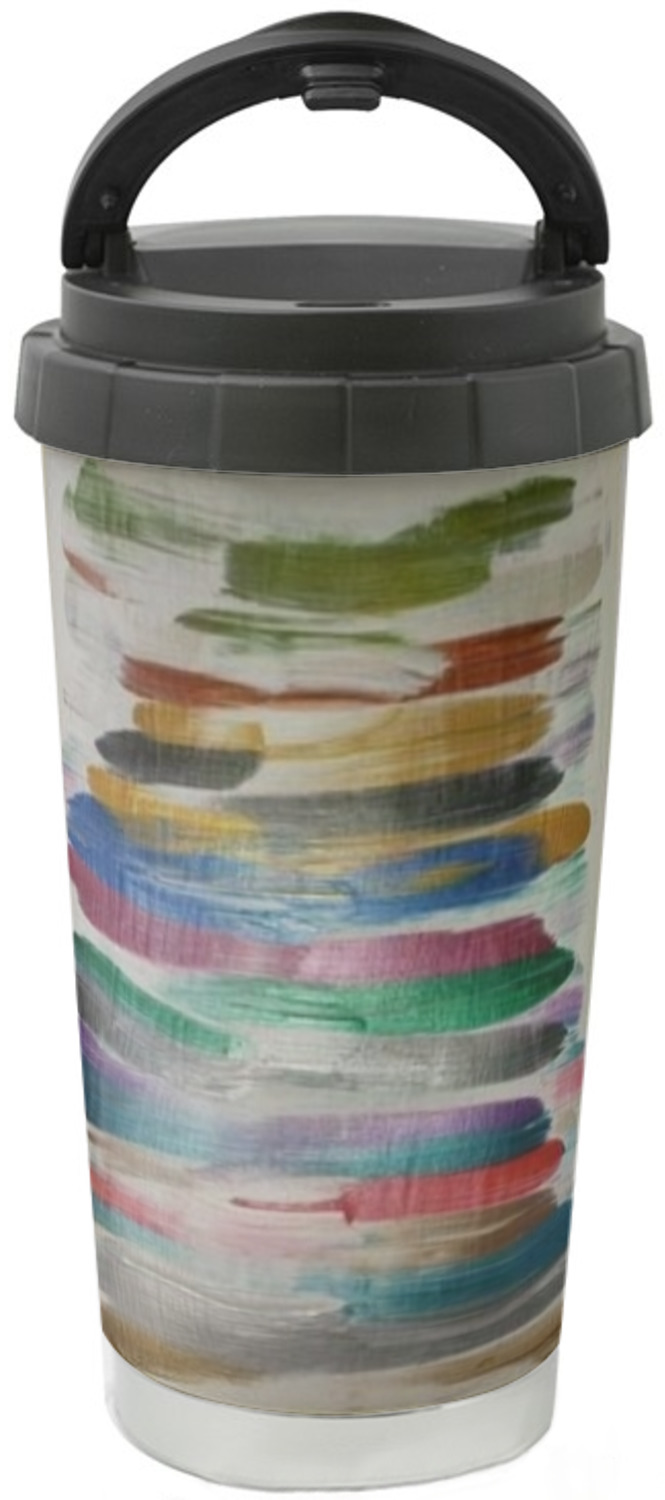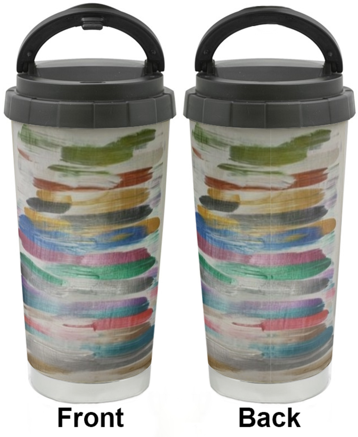 This sleek and tapered 16 oz stainless steel travel cup is a perfect fit in the hand. With the strip of visible stainless steel on the bottom, you'll be feeling classy!