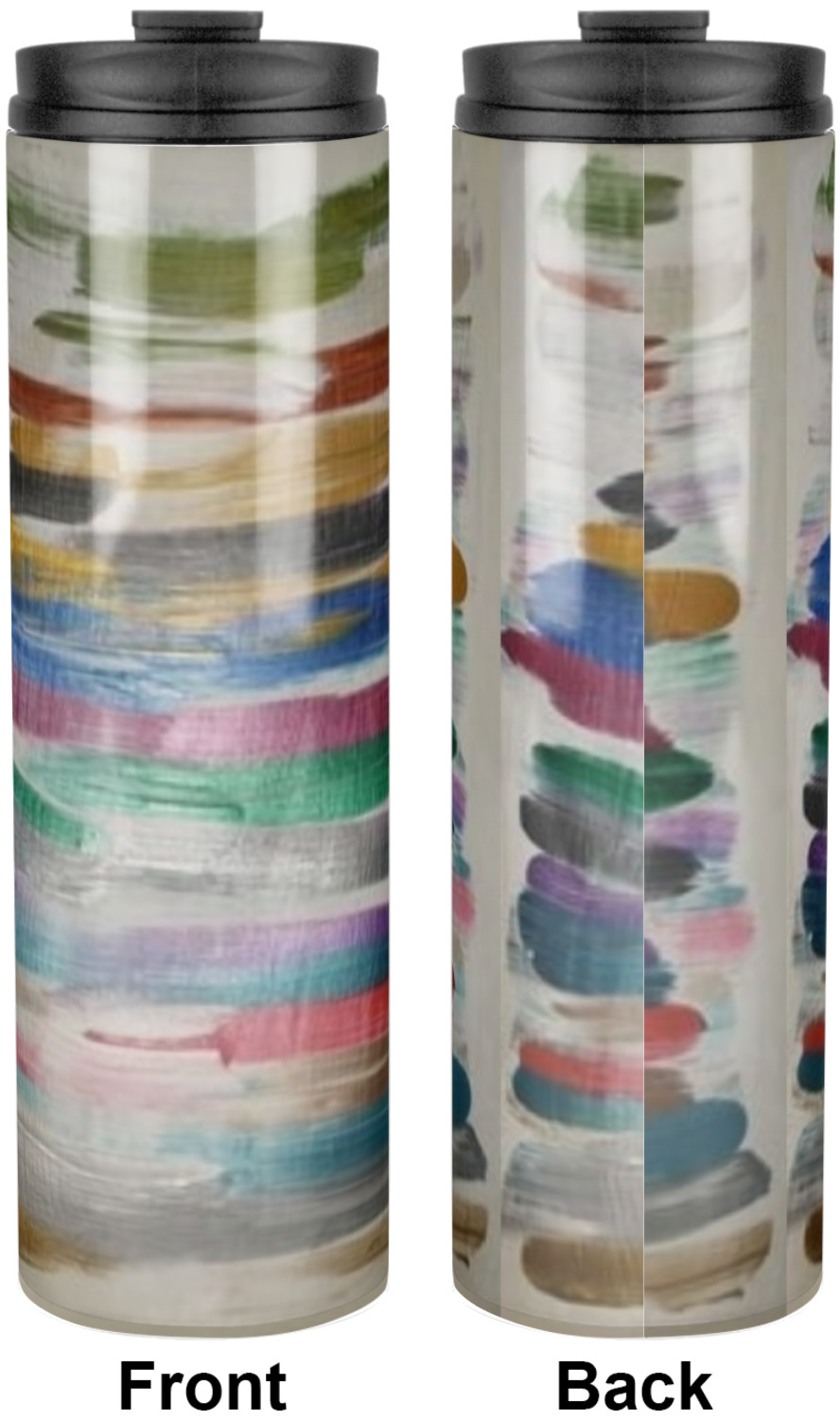 Sip your favorite drink on the go with your own custom stainless steel tumbler! Our slim cylinder shape is perfect for holding your drink in hand, in your purse, or in your backpack! This sleek and modern tumbler is a perfect gift for coffee and tea lovers keeping their drinks just the right temperature throughout the day! We offer two sizes, a 16 oz. or 20 oz., to personalize. Browse and customize or design or create your own with our online design studio!
