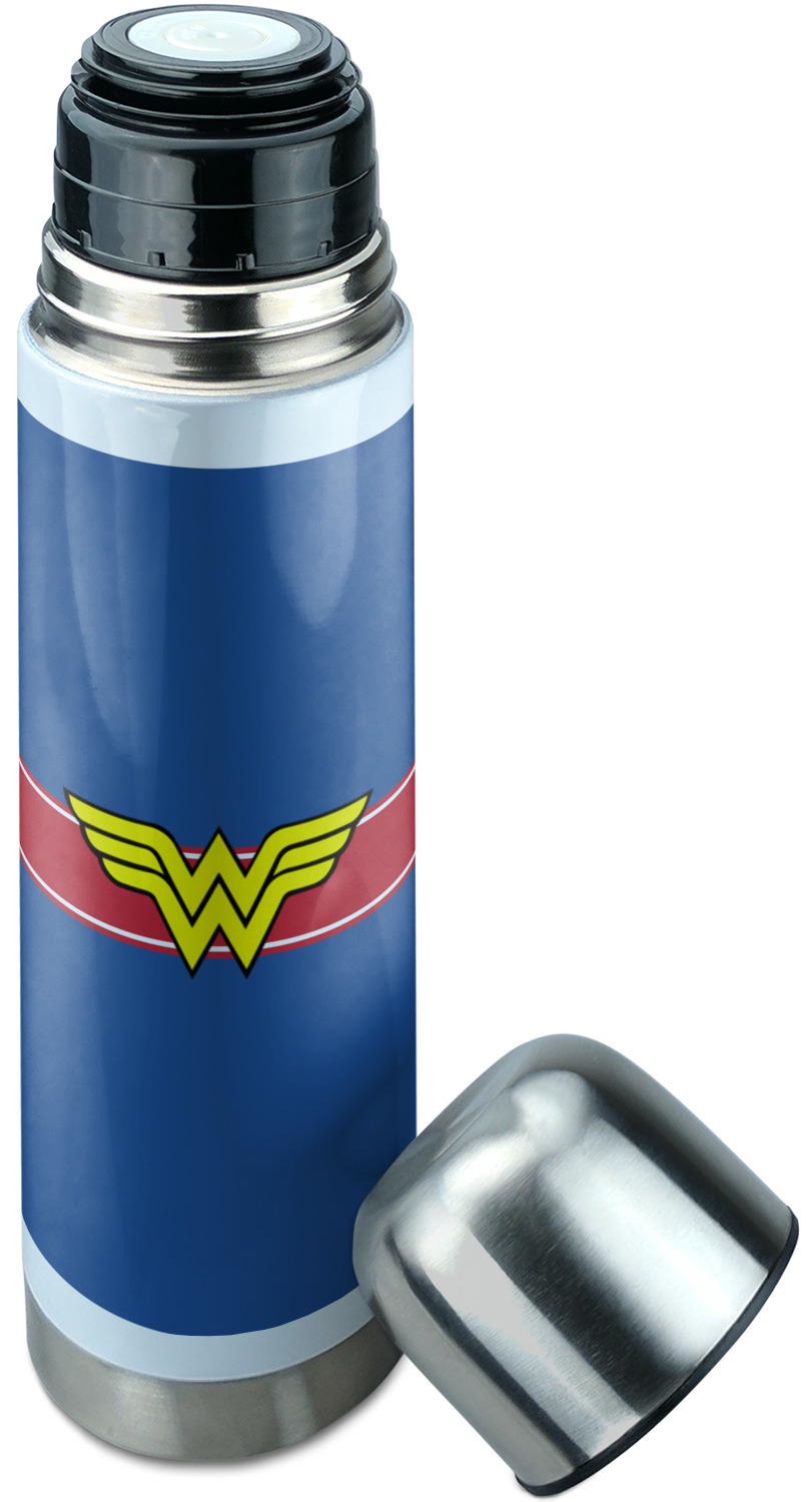 Manufactured from stainless steel, this thermos is built durably and double-walled insulated to preserve the temperature of your drink for hours. It also features a screw off lid that is made to also function as a small cup. Upon unscrewing this part of the thermos bottle, a pop-open, pour feature emerges. This feature allows you to slowly pour your beverage into your lid, ensuring a steady, controlled pour into your lid or other cup. With a capacity of 25 ounces, these large thermoses can hold several servings of your favorite beverage. Your customization is displayed all around the bottle with bright, vibrant color.